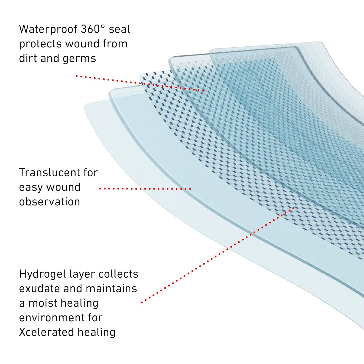 - WATERPROOF, TRANSLUCENT & FLEXIBLE: Translucent for easy wound observation with 360° showerproof seal that protects wound from dirt and germs. STERILE to prevent infection. Moves and flexes with your body for optimum comfort during everyday wear