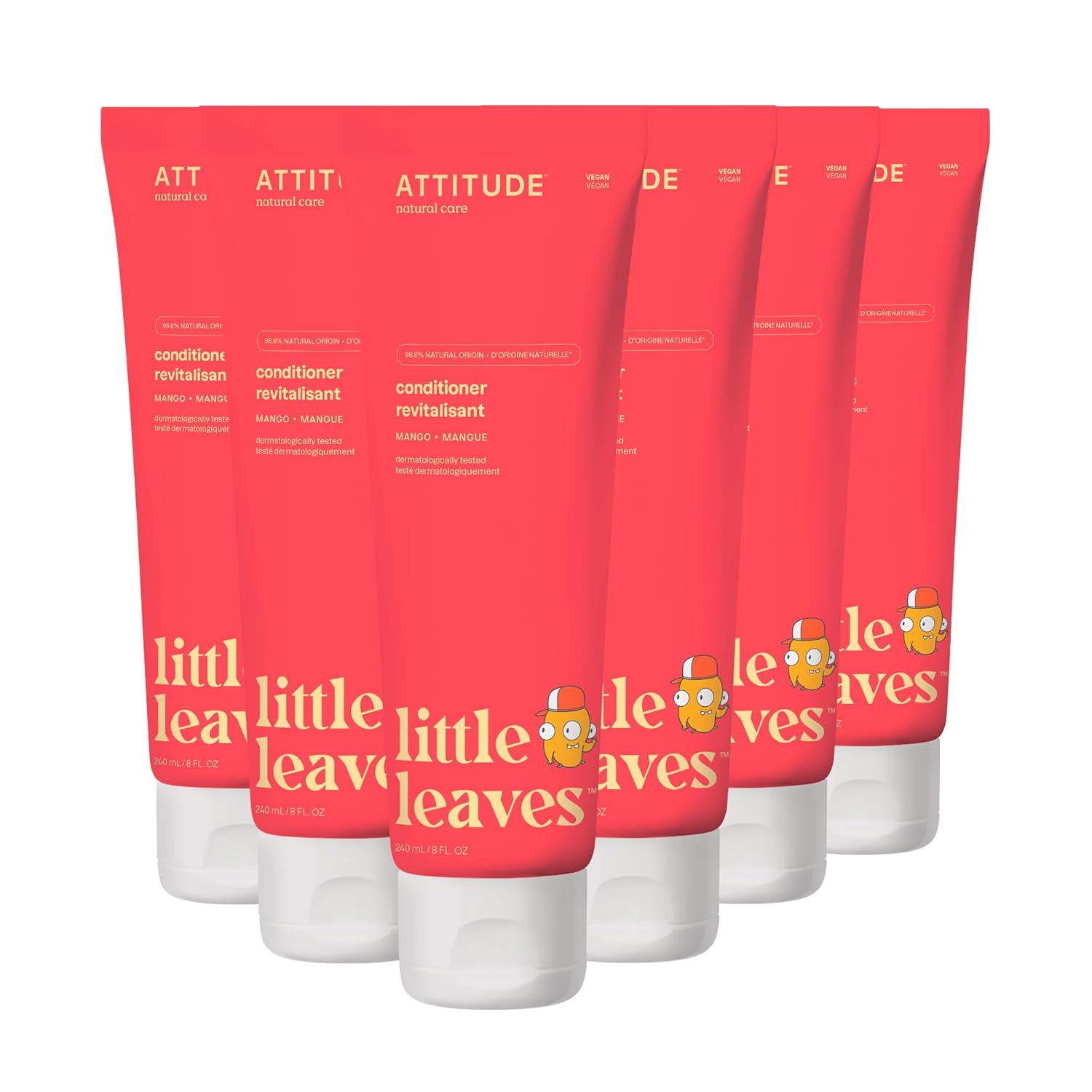 ATTITUDE Hair Conditioner for Kids, Dermatologically Tested Products, Plant- and Mineral-Based Detangler, Vegan, Mango, 8 Fl Oz (Pack of 6)
