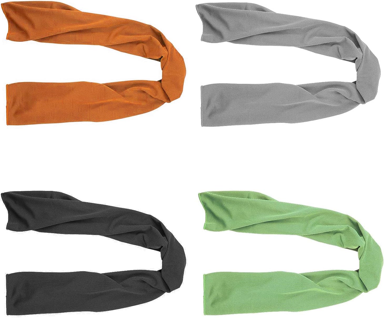 - 39"x11" Snap Cooling Towel perfect around your neck as a scarf, headband or bandana and it can fold into a small, portable pouch and very easy to carry.The package contains four different colors: Blue/dark blue/gray/green