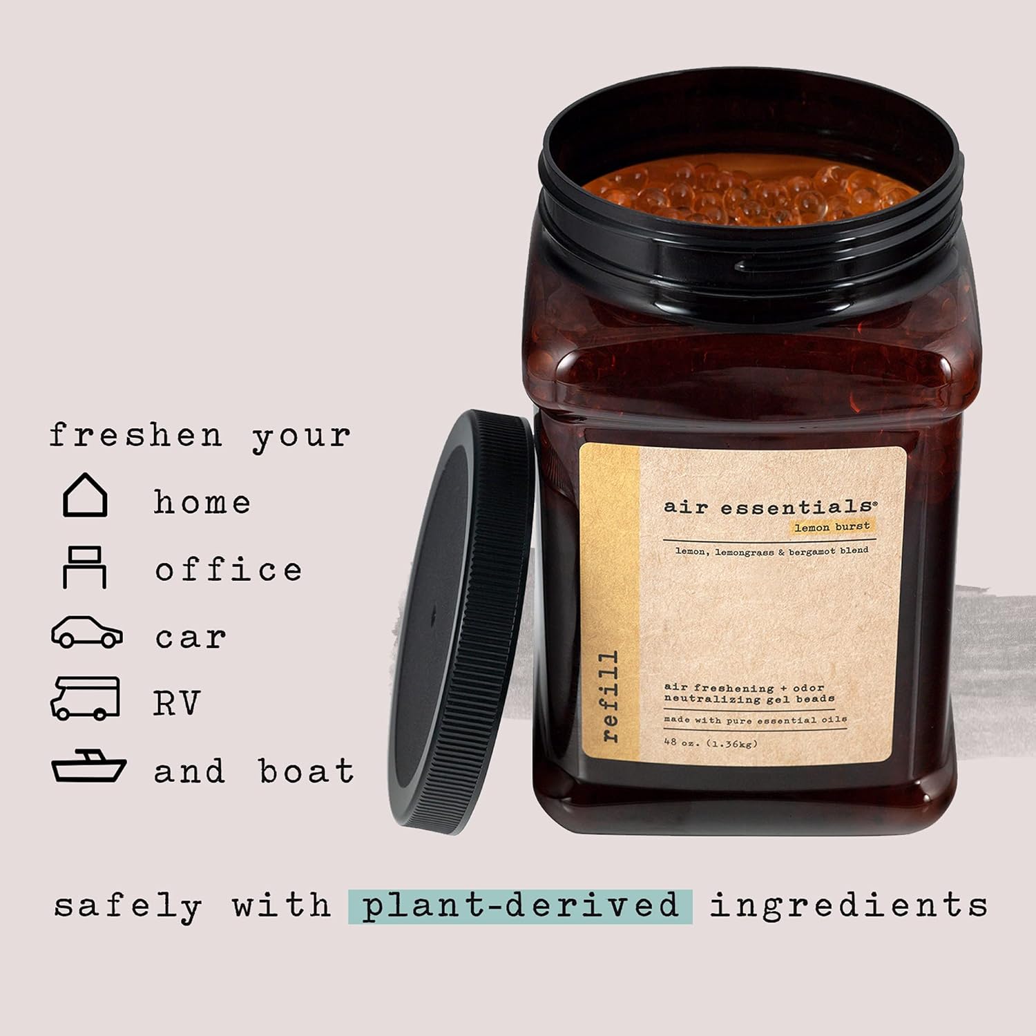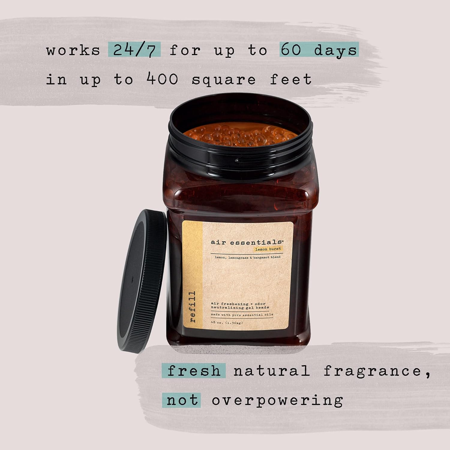 Air Essentials Air Freshener & Odor Neutralizer Gel Bead 48 oz Refill – Odor Eliminator - Made with Pure Essential Oils – Lemon Burst Scent
