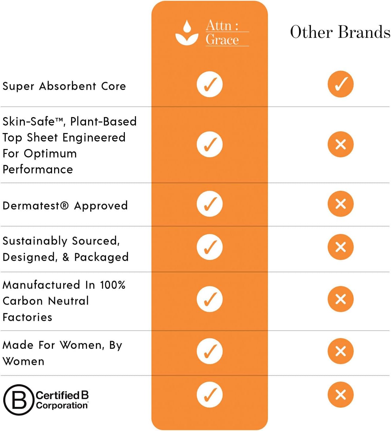 - Designed by Women, for Women: Attn: Grace is dedicated to supporting women managing bladder leaks, whatever your stage of life, with thoughtfully crafted personal care. Whether you need extra-heavy protection, postpartum protection, discreet bladder leak pads, or breathable incontinence solutions, our plant-based products provide comfort, confidence, and care tailored to your needs.