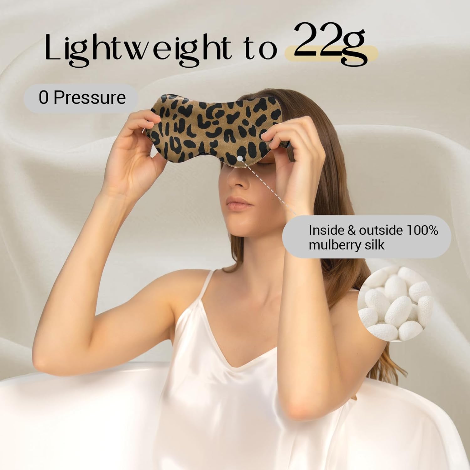 ZIMASILK Adjustable 100% 22 Momme Mulberry Silk Sleep Mask for Sleeping, Filled with Premium Mulberry Silk, Softest & Breathable Eye Sleeping Mask (Leopard-Black Golden)