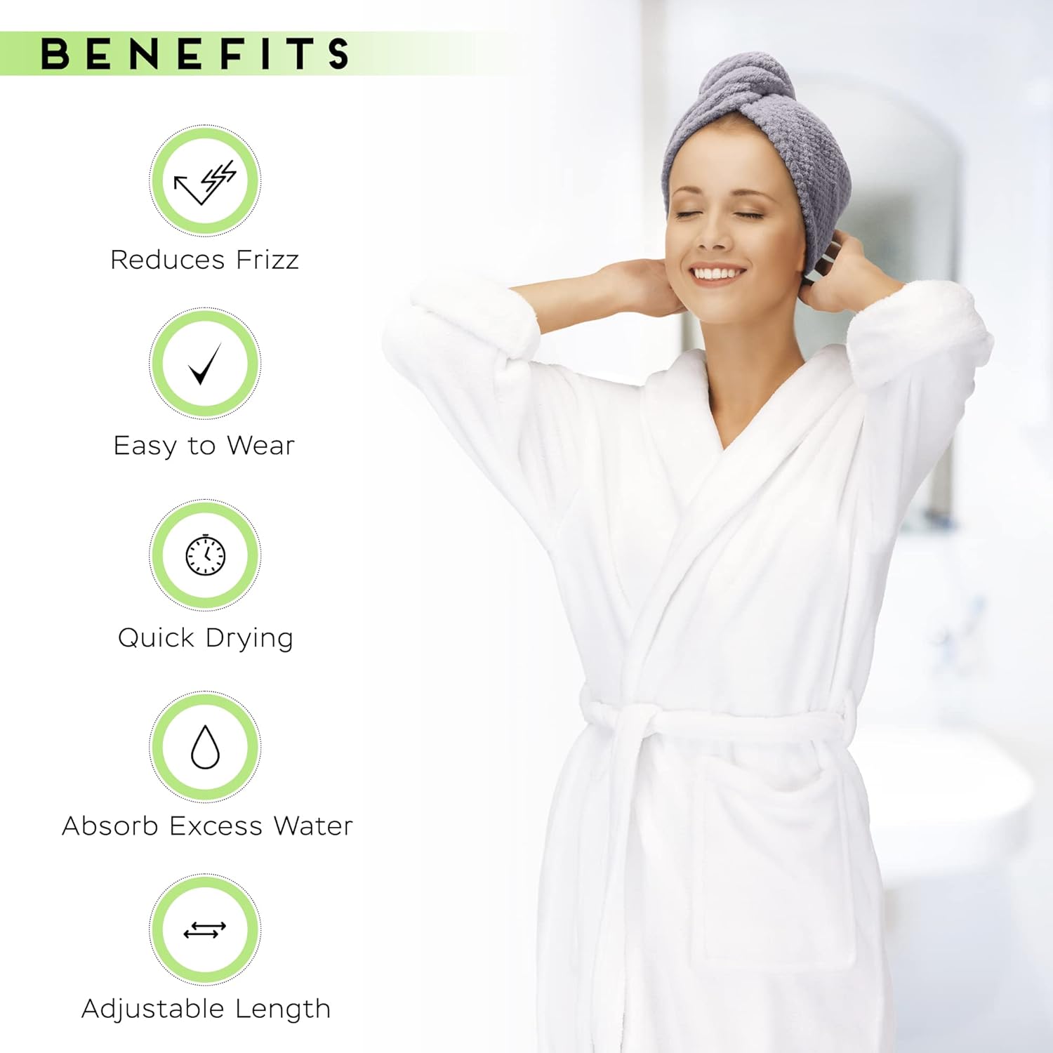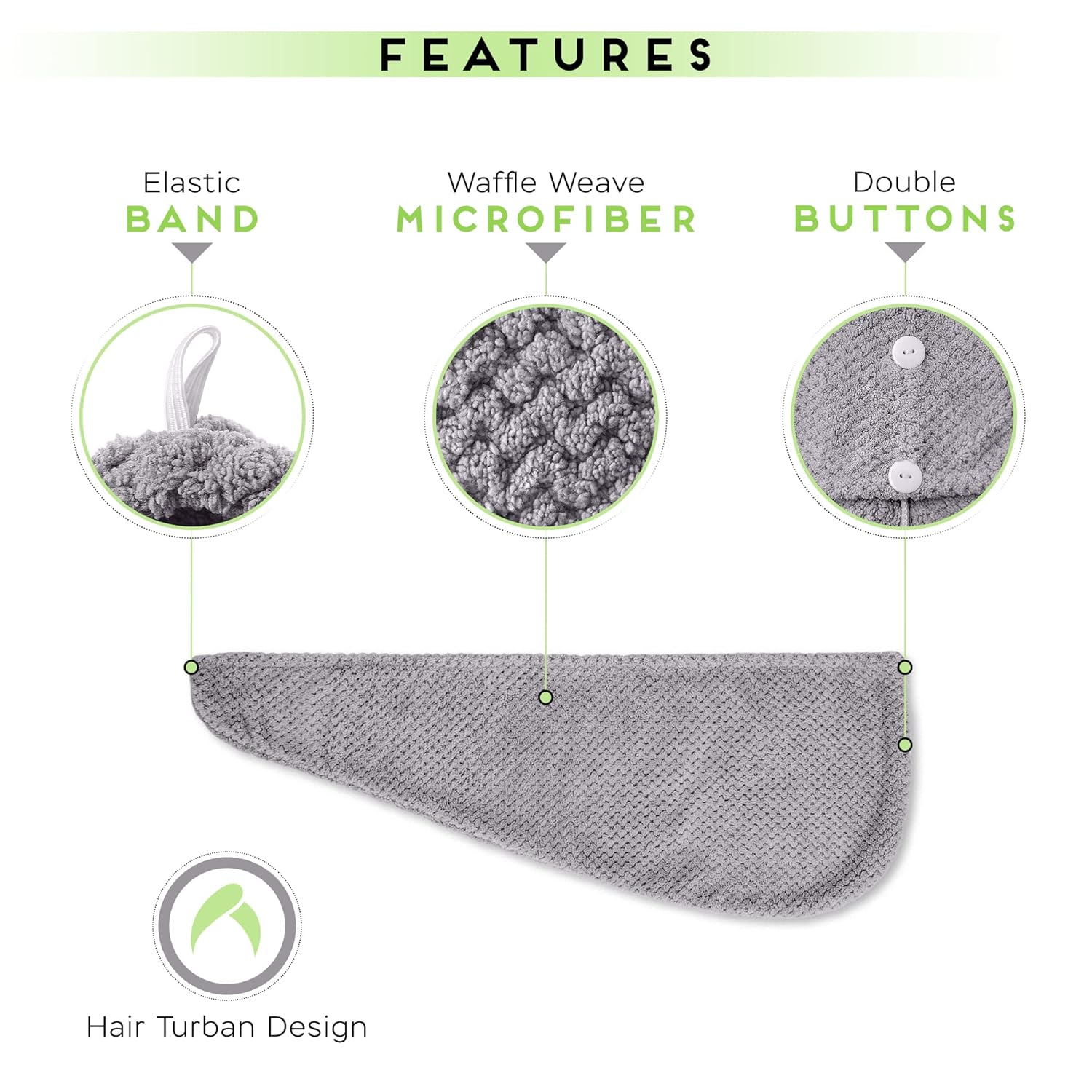 2 Pack Microfiber Hair Towel Wrap for Women, Anti Frizz Quick Drying Hair Turban for All Hair Style, Absorbent and Lightweight (Grey)