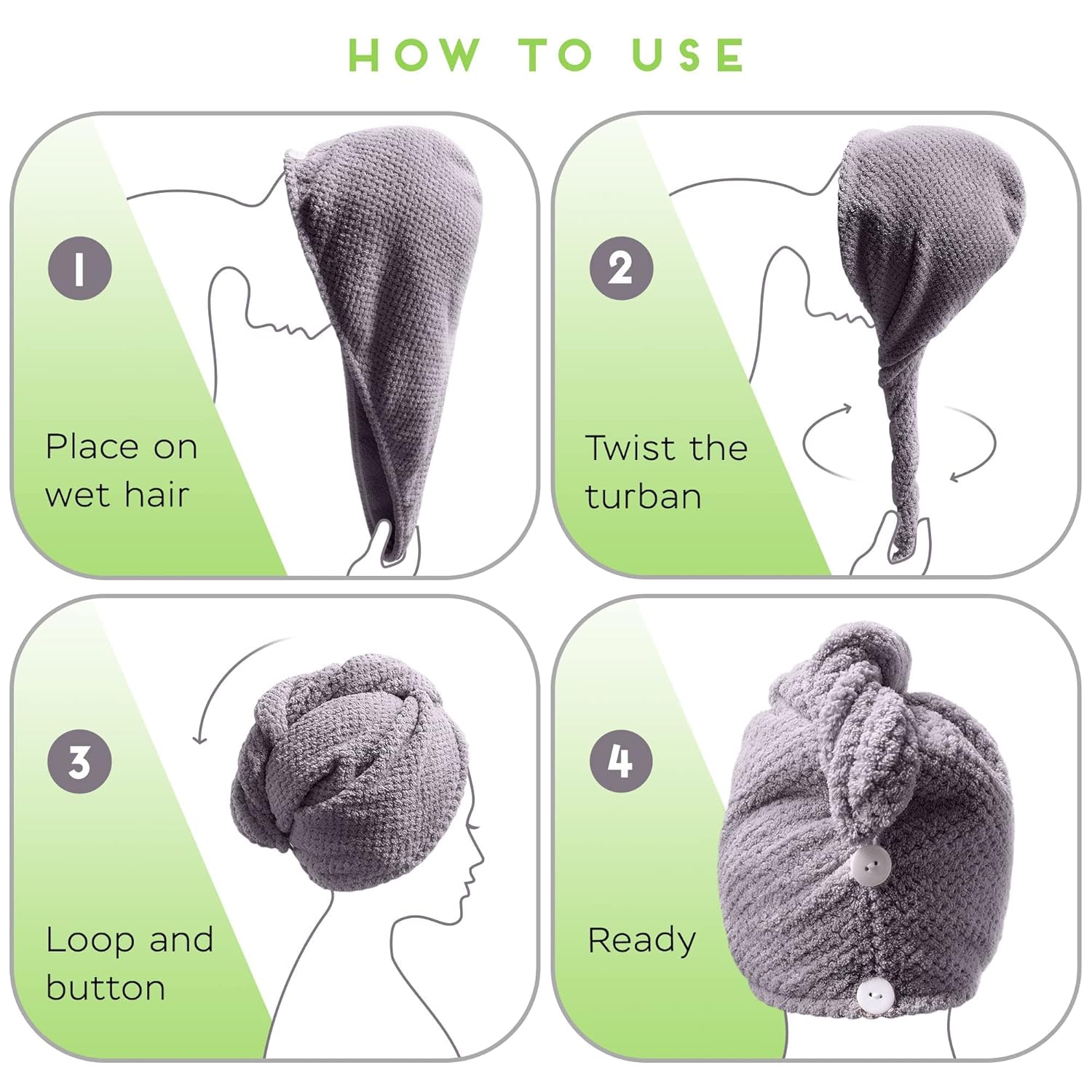 - The hair towel warp is made from ultra absorbent microfiber material, helping to reduce hair frizz and split ends. Great for curly hair.