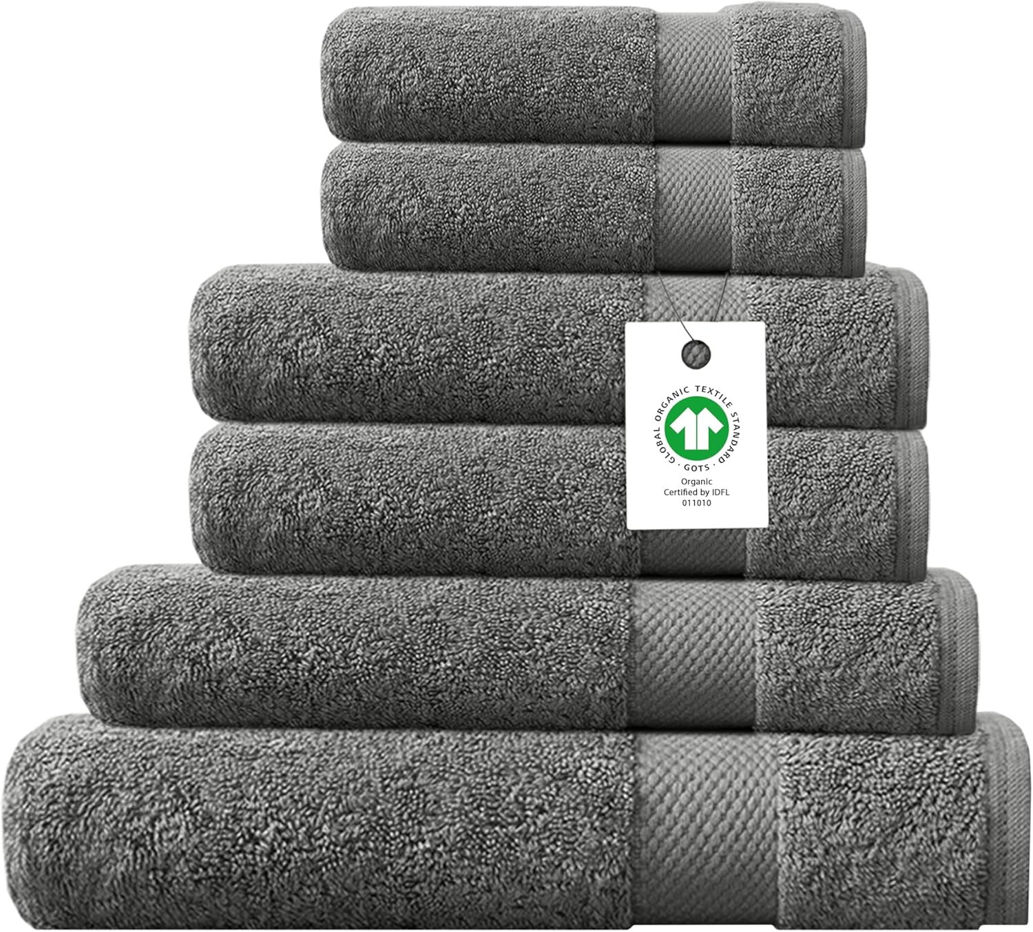 Delara 100% Organic Cotton Towels 650 GSM Plush Feather Touch Quick Dry Towel, 6-Piece Towel Set GOTS Certified, Oeko-Tex Green Certified, 1 Bath Towel, 1 Bath Sheet, 2 Hand Towels & 2 Wash Cloths