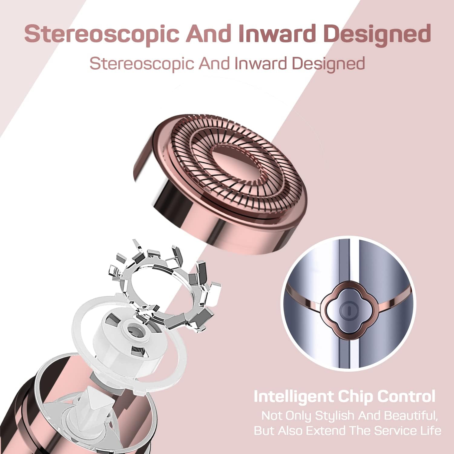 - 【 UPGRADES & INNOVATIVE TECHNOLOGY】The upgraded chip smart control button makes the hair remover for women more intimate to use and lasts longer. This face hair removal utilizes revolutionary Butterfly Technology that removes hair by microscopically paring it down by a spinning head covered by a plate. Horizontal cutting head with twin rotating blades expands the face razor's contact area.