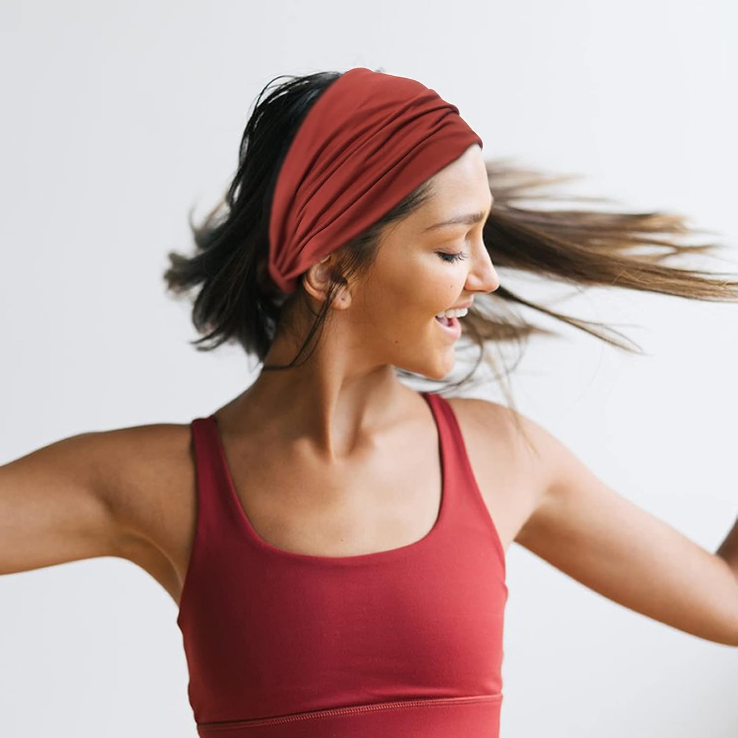 - Headbands are meant to fill two important purposes — to absorb sweat and to keep hair out of your face. We chose the softest material available to ensure wearers’ comfort, and we offer our women’s headbands in 5.5-inch width,so you can fold it as you like. We ensure that the material we choose contains just the right proportion of spandex so that our workout headbands are stretchy enough to stay in place without slipping off but not so tight that they’re uncomfortable.