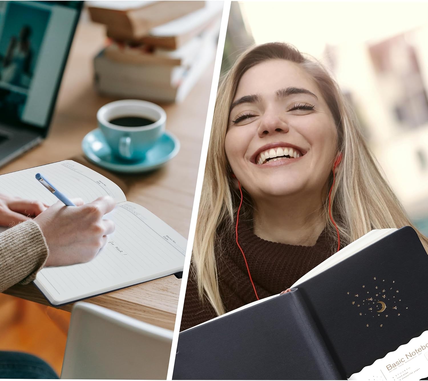 - ✒️ HARD BOUND NOTEBOOK - Hardcover notebook journal with durable hard cover and high-quality paper can keep your notes well perfect as travel journal, meeting notebook, teen diary. Let your writing creation more freedom on the ruled journal notebook. Perfect for journals to writing in, or note-taking in college classes or meetings.