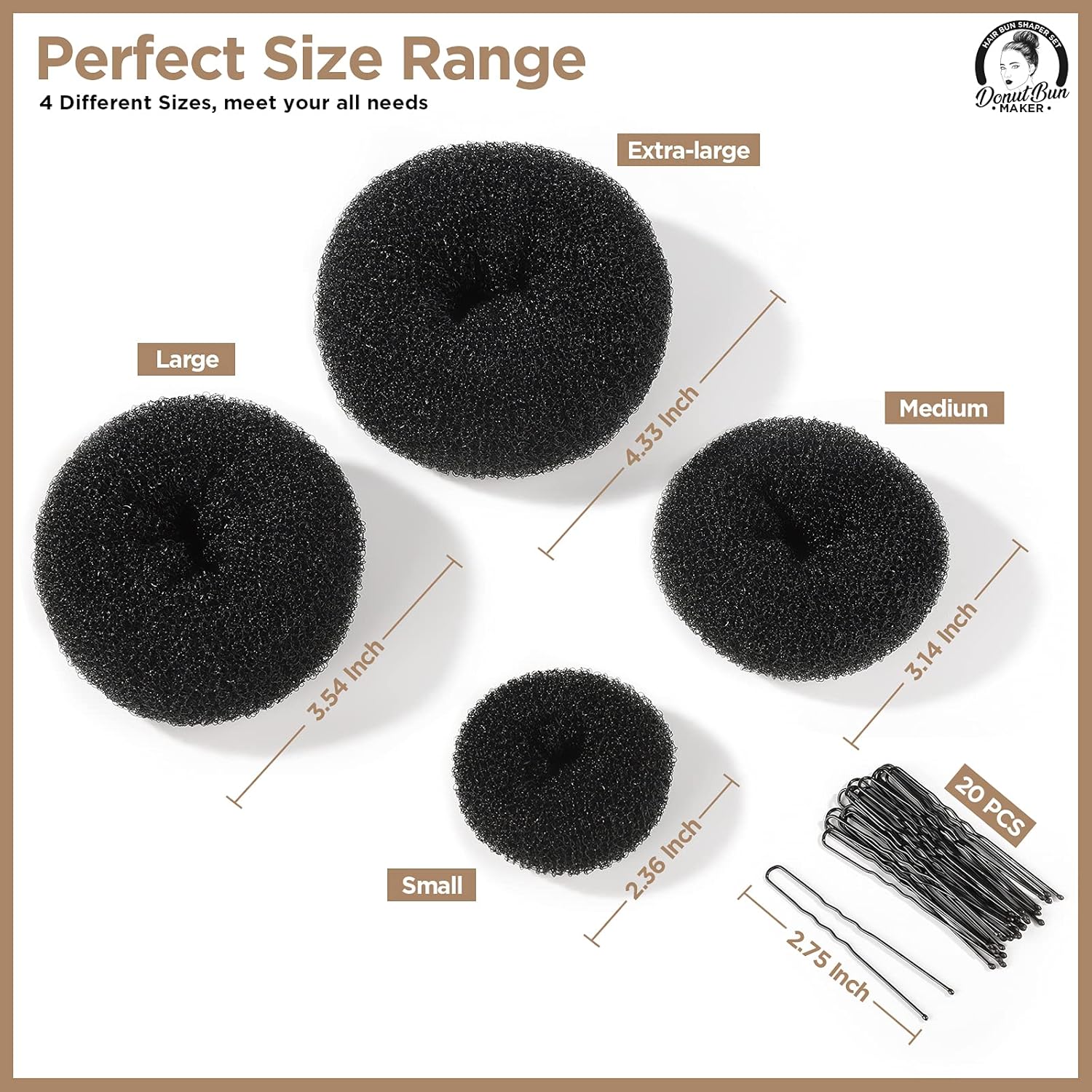 - What You Will Get: 4 different sizes of hair donut bun makers (extra large, large, medium, small) and 20pcs bobby pins. Perfect all-in-one bun styling kit for girls and women. Transform your hairstyle with ease. Invest in quality and achieve salon-worthy results