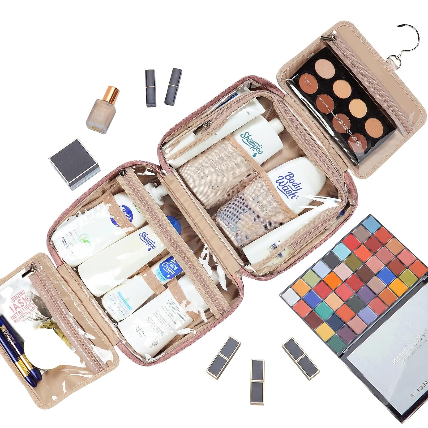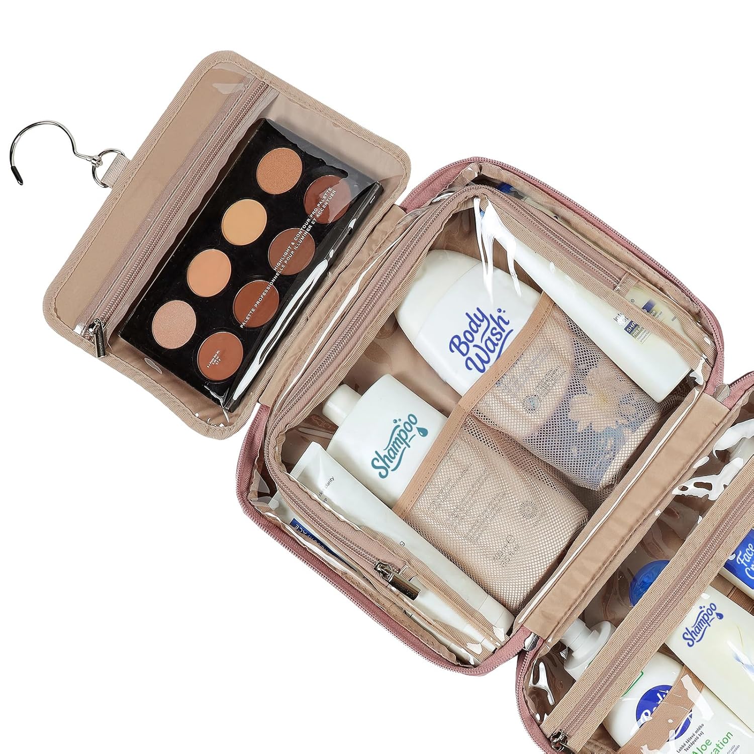 NISHEL Travel Toiletry Bag for Women Large Capacity, Makeup Essentials Organizer, Hanging Case for Accessories, Cosmetics, Rosewood-Pink