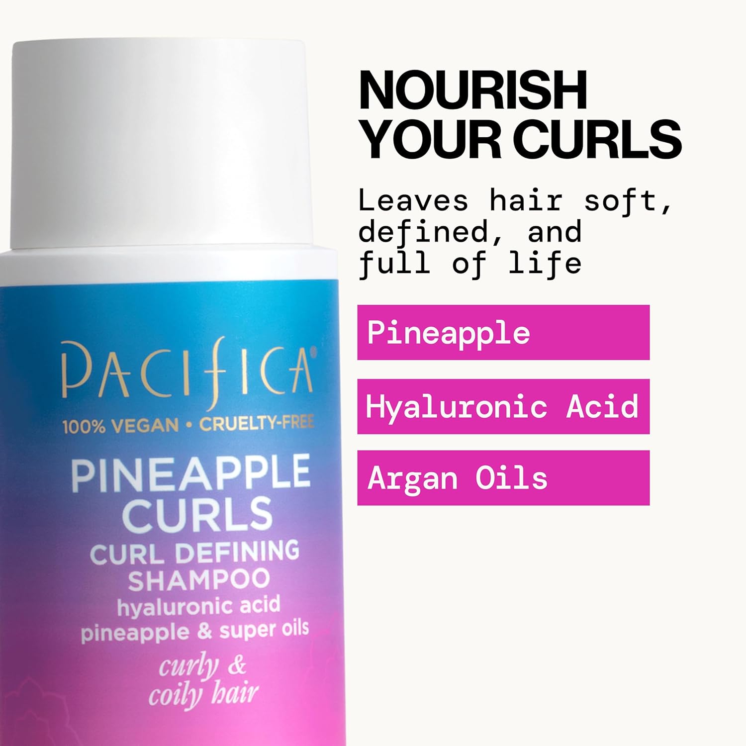 - BOOSTS CURL DEFINITION & BOUNCE: Embrace your natural curls! Pacifica’s Pineapple Curls Shampoo and Conditioner set is specially formulated to enhance curl definition and bring out the best in wavy, curly, and coily hair. Infused with juicy pineapple enzymes, this duo helps set your curls free – encouraging shape, spring and bounce without weighing them down. Your ringlets or waves will appear more defined and lively, with a healthy, frizz-free shine that lets your natural beauty shine through.