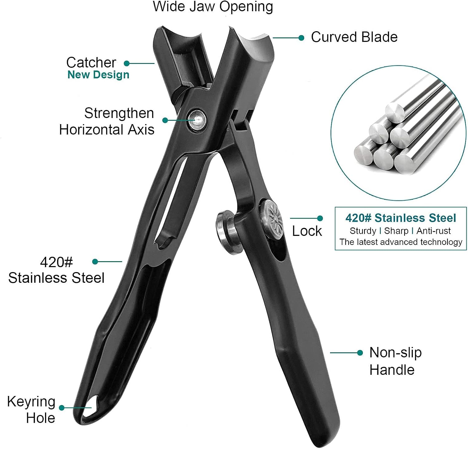 Toenail Clippers for Men Thick Nails Large Wide Jaw Opening Portable Ultra Sharp Nail Clippers with Catcher Heavy Duty Fingernail Cutter for Adult Seniors Women (Black with File)