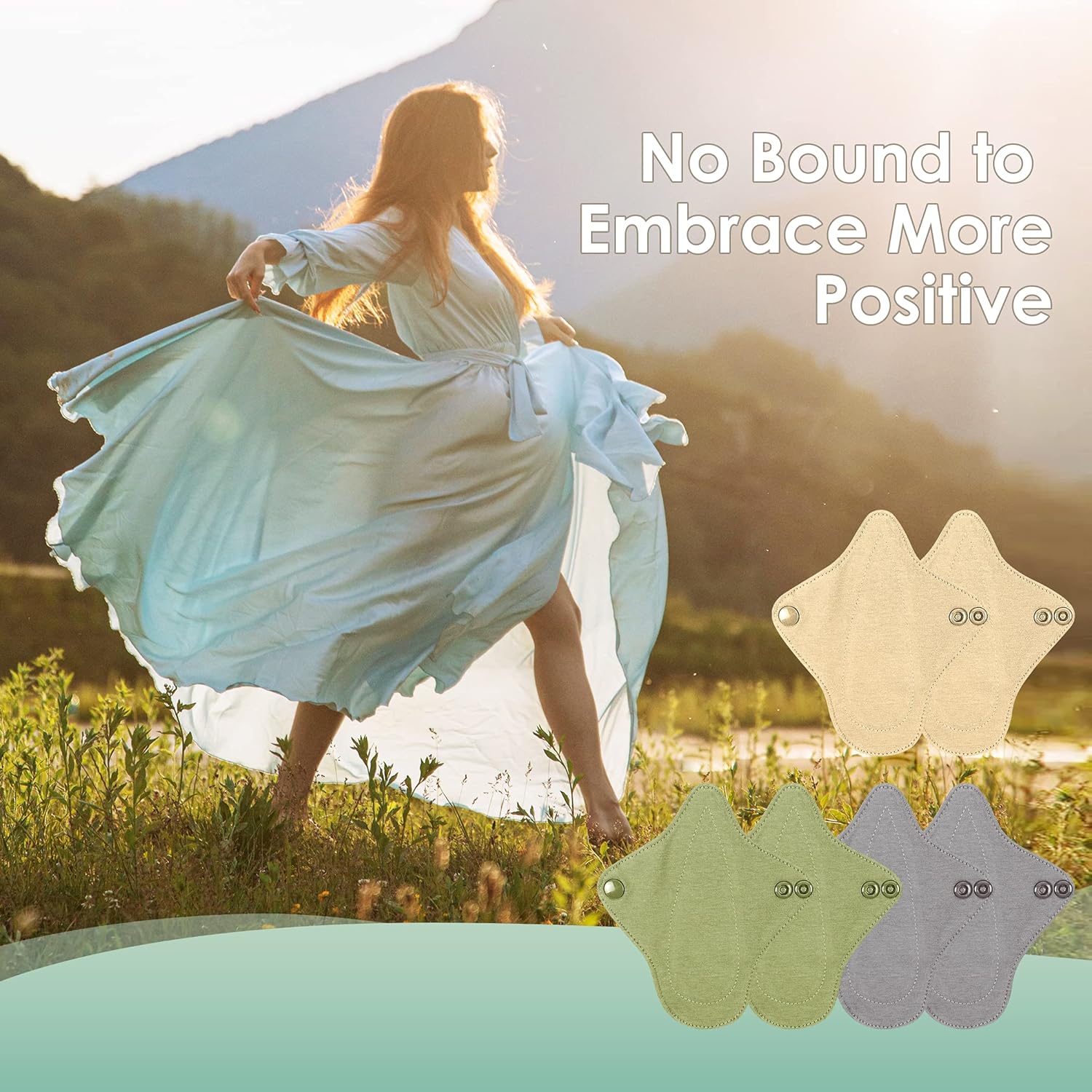 - 6 Pcs Cloth Pads in 5 Sizes: Each set cloth menstrual pads including 6 pack cloth panty liners. Wegreeco feminine Pads for Women are available in 5 sizes. Extra Small size length 5.3 in, wing span 5.9 in, Small size length 7.8 in, wing span 7 in, Middle size length 10 in, wing span 7 in, Large size length 11.6 in, wing span 7.5 in, Extra Large size length 13.7 in, wing span 7.7 inch