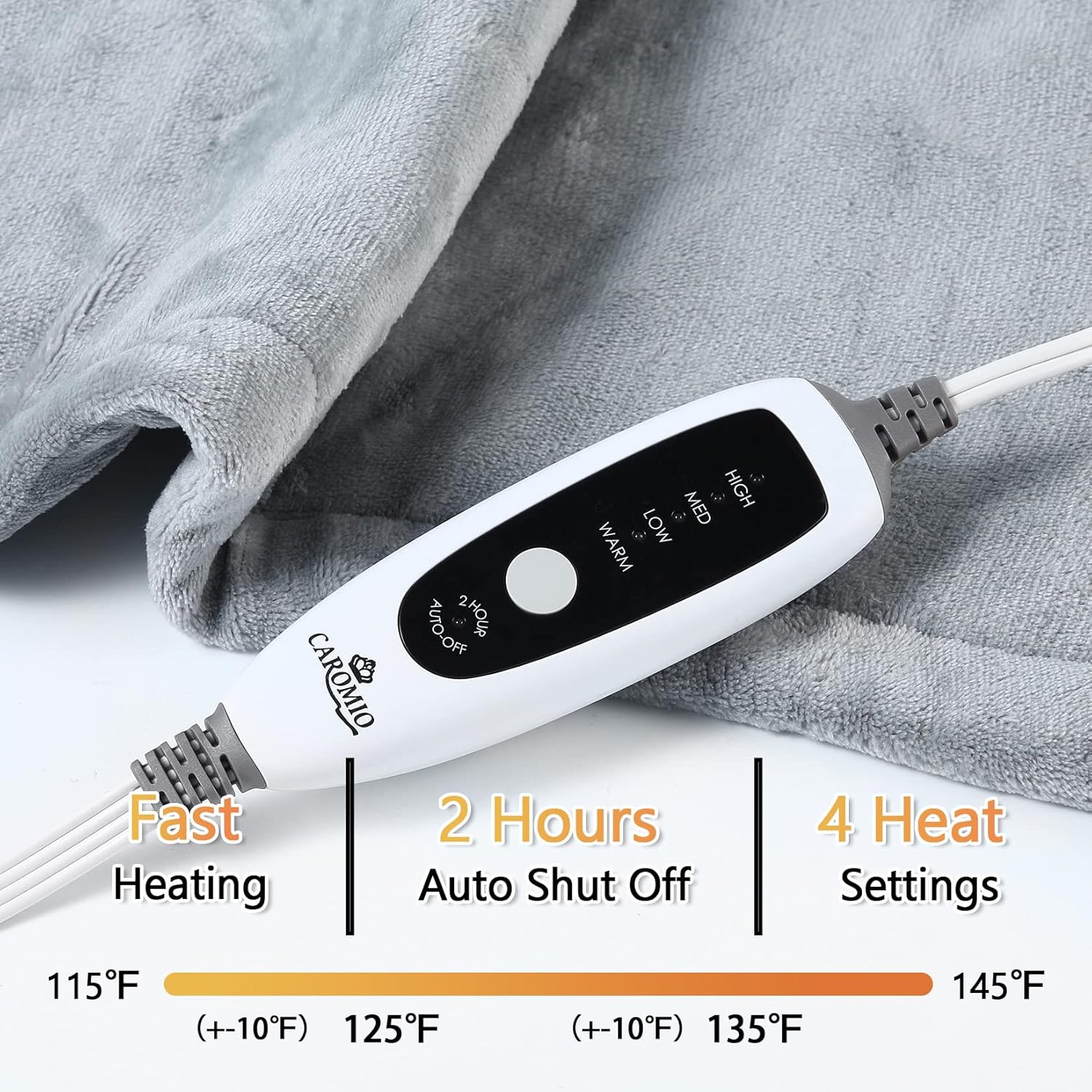 - 4 HEAT SETTINGS & 2 HOUR AUTO-OFF: Our electric heating pad with auto shut off has 4 different heat levels, which can choose the right one based on your needs using the remote control. The temperature range is 45℃-60℃/115℉-145℉