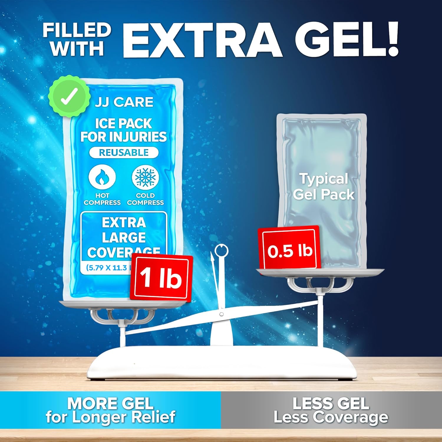 JJ CARE Gel Ice Packs Reusable (Pack of 2, XL) - Ice Packs for Injuries Reusable - Soft Ice Pack for Injuries with Wrap - Flexible Therapy, for Knee, Back, Neck, Wrist, & Ankle