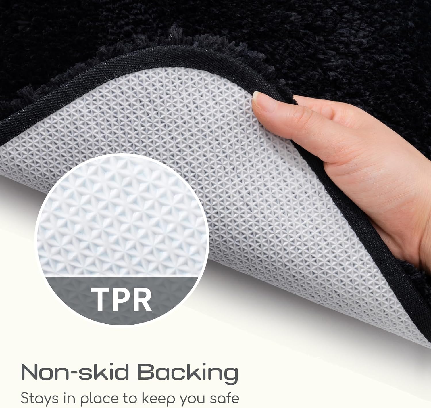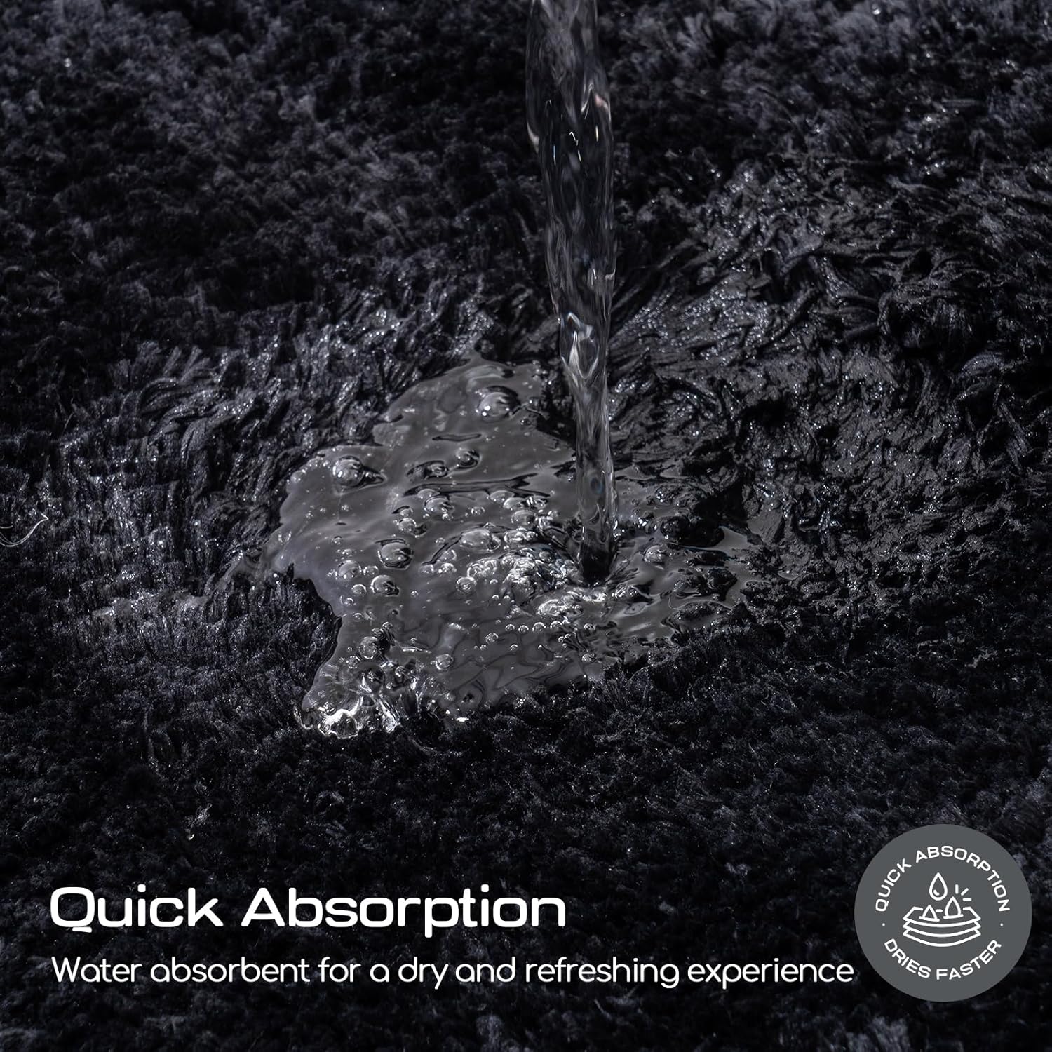 ROSMARUS Shaggy Bath Rugs Non Slip 24" X 36", Water Absorbent Bath Mat, Soft Shower Mat for Floor & Tub, Fluffy Plush Bathroom Rugs Machine Washable, Black