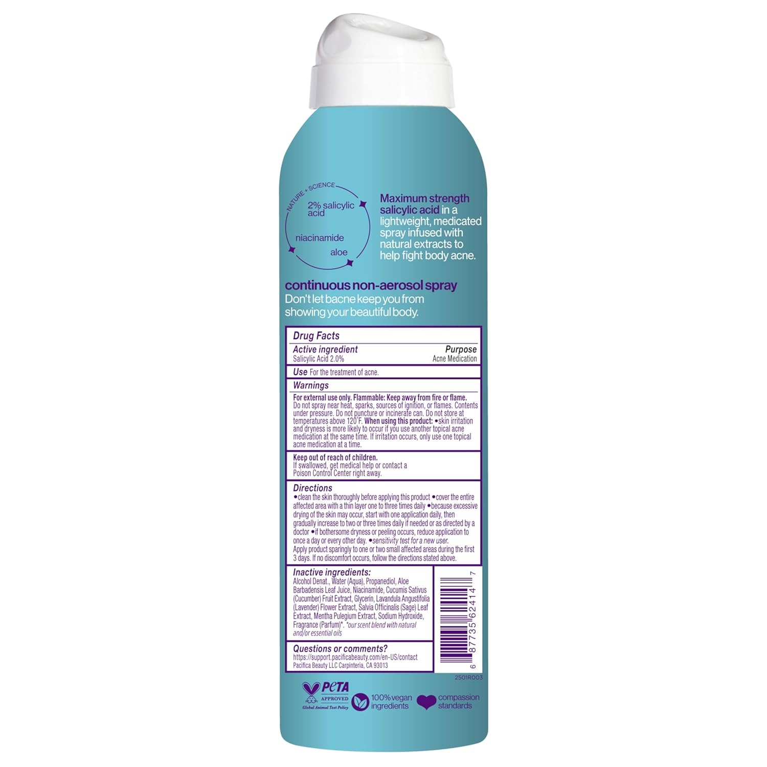 Pacifica Bacne Warrior - Bacne Salicylic Acid Spray, Back Acne Treatment Spray with 2% Salicylic Acid, Niacinamide, and Aloe, Body Acne Warrior for Body, Chest, and Back, Dermatologist Tested- 6 Fl Oz