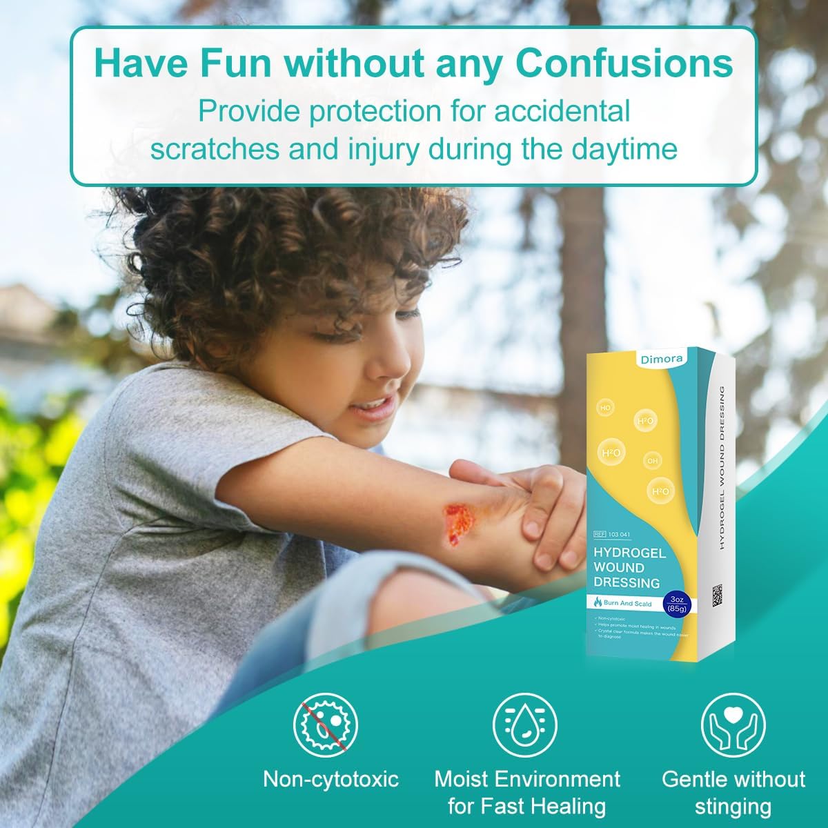 - More Flexible for Any Positions - Dimora Hydrogel dressings conforms to the irregular contours of a wound bed and the tiny position, such as cracked fingers and nails gap, tightly fit the joints to support substantial exercise and your little one have fun