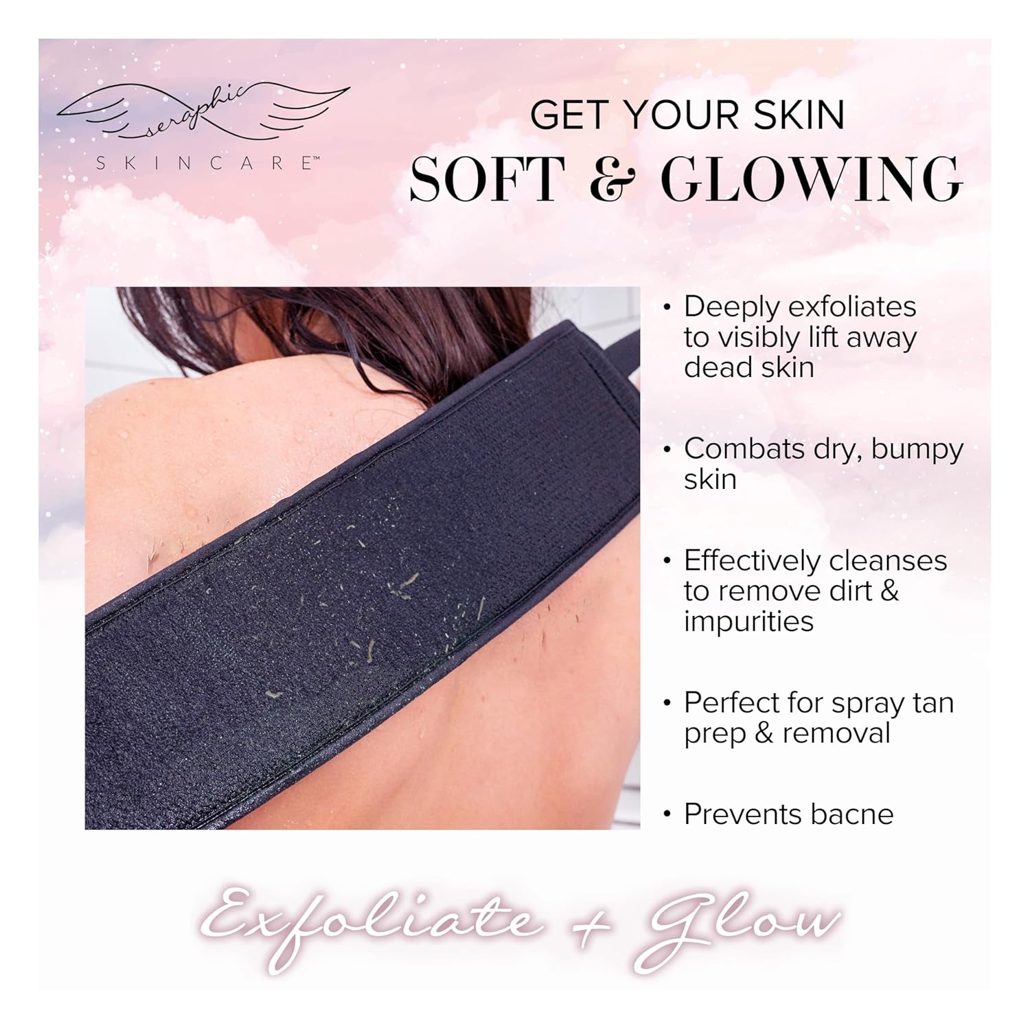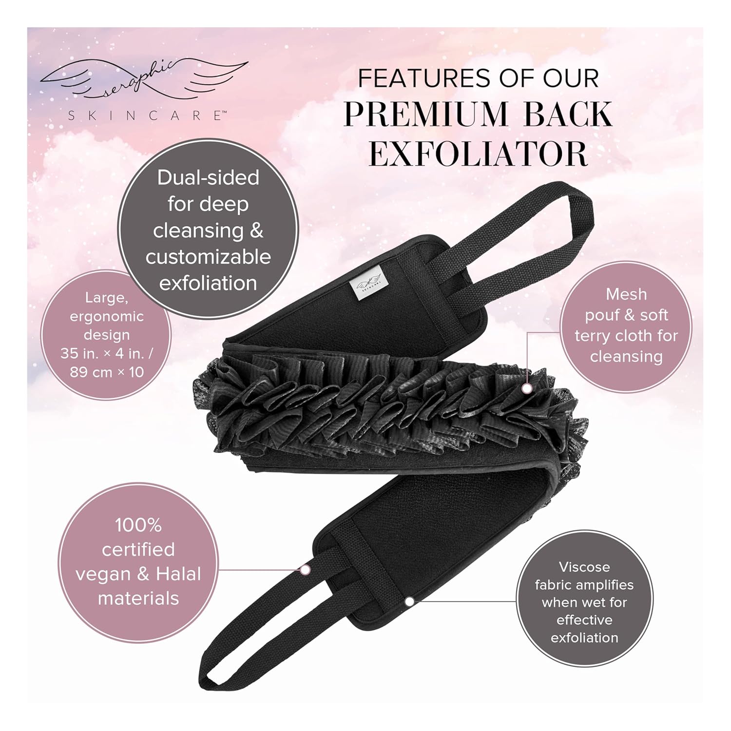 Seraphic Skincare Premium Back Exfoliator – Dual-Sided Back Scrubber for Men & Women – 100% Vegan – Viscose Side for Deep Exfoliation, Mesh & Washcloth Side for Cleansing – Bacne Prevention