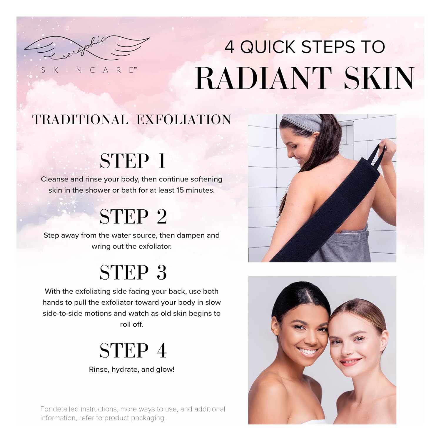 - INDULGE IN AN AT-HOME SPA EXPERIENCE – At Seraphic Skincare, we’re committed to offering premium exfoliating products at affordable prices. We invite you to immerse yourself in the luxurious experience of exfoliation and self-care at home by adding our Korean-inspired back cleaner for shower to your beauty routine for that glow you’ve been dreaming of!