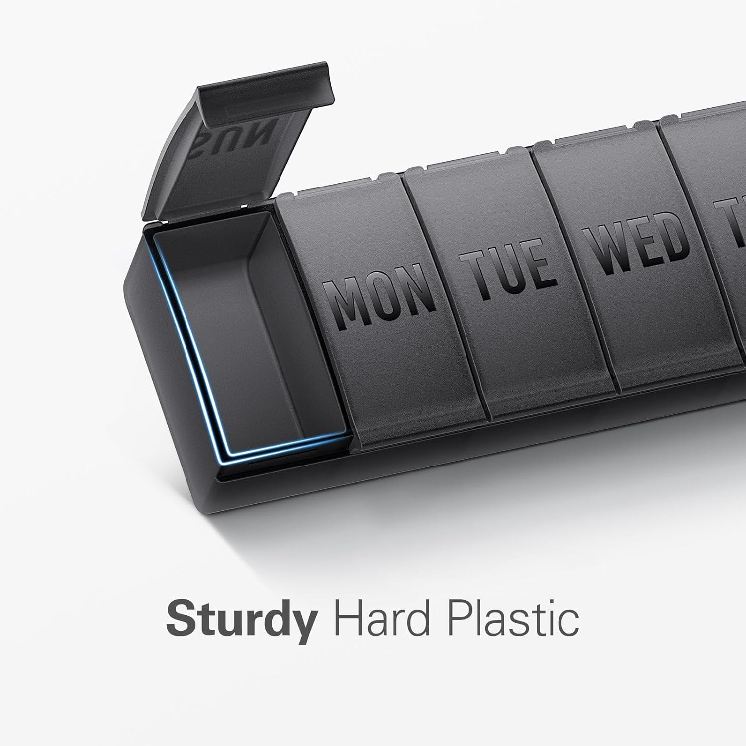 - Upgraded Easy Open Design: Ingenious design with protruding edge of the lids makes the pillbox easy to open, no problem for the elderly or arthritis.