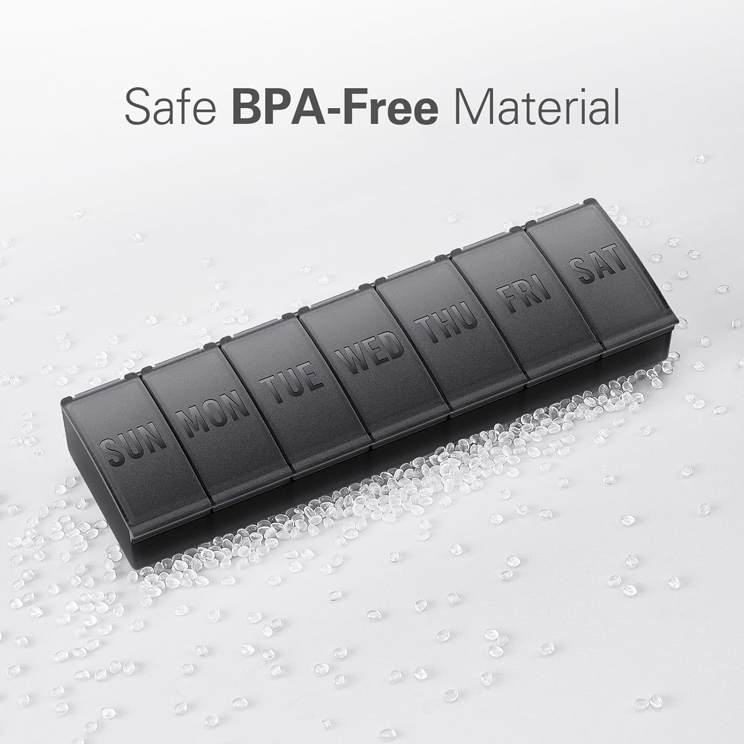 - BPA-Free Materials: Pill holder is made of food-grade PP plastic, BPA-free, safe for medical use. Sturdy and durable, the snap-shut lids would never pop up even when dropped.