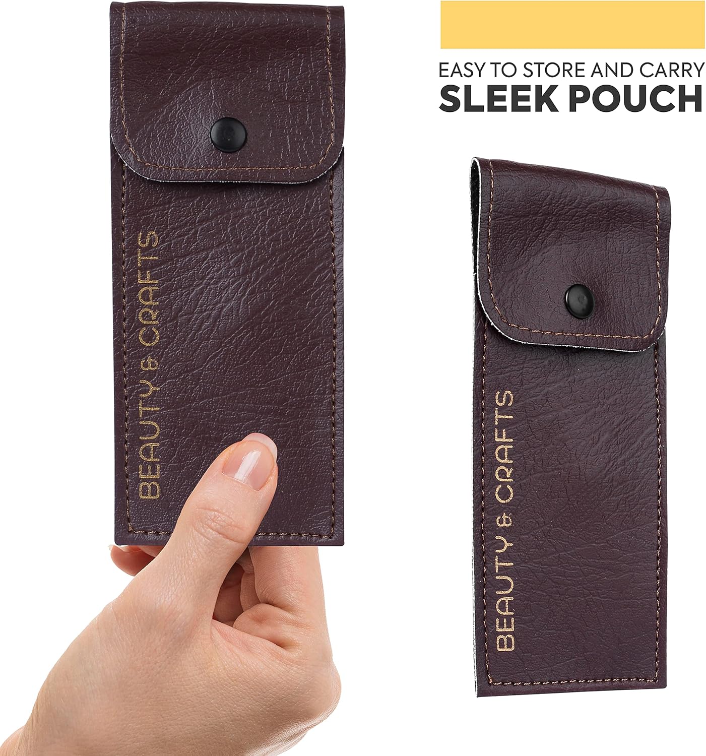 Beauty & Crafts- 5'' German Beard Mustache Scissors - 2 Mustache Comb for Facial Hair with Beautiful Pouch - Beard Trimming Scissors Use for Grooming, Cutting, and Styling of Mustache (Black)