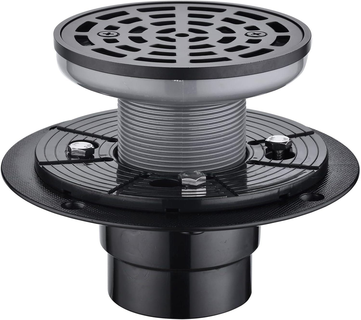 RANDOM Round Shower Drain Kit Matte Black with Adjustable Base Flange,4 Inch Shower Drain Cover with Threaded Adapter,Removable Invisible Look 304 Stainless Steel