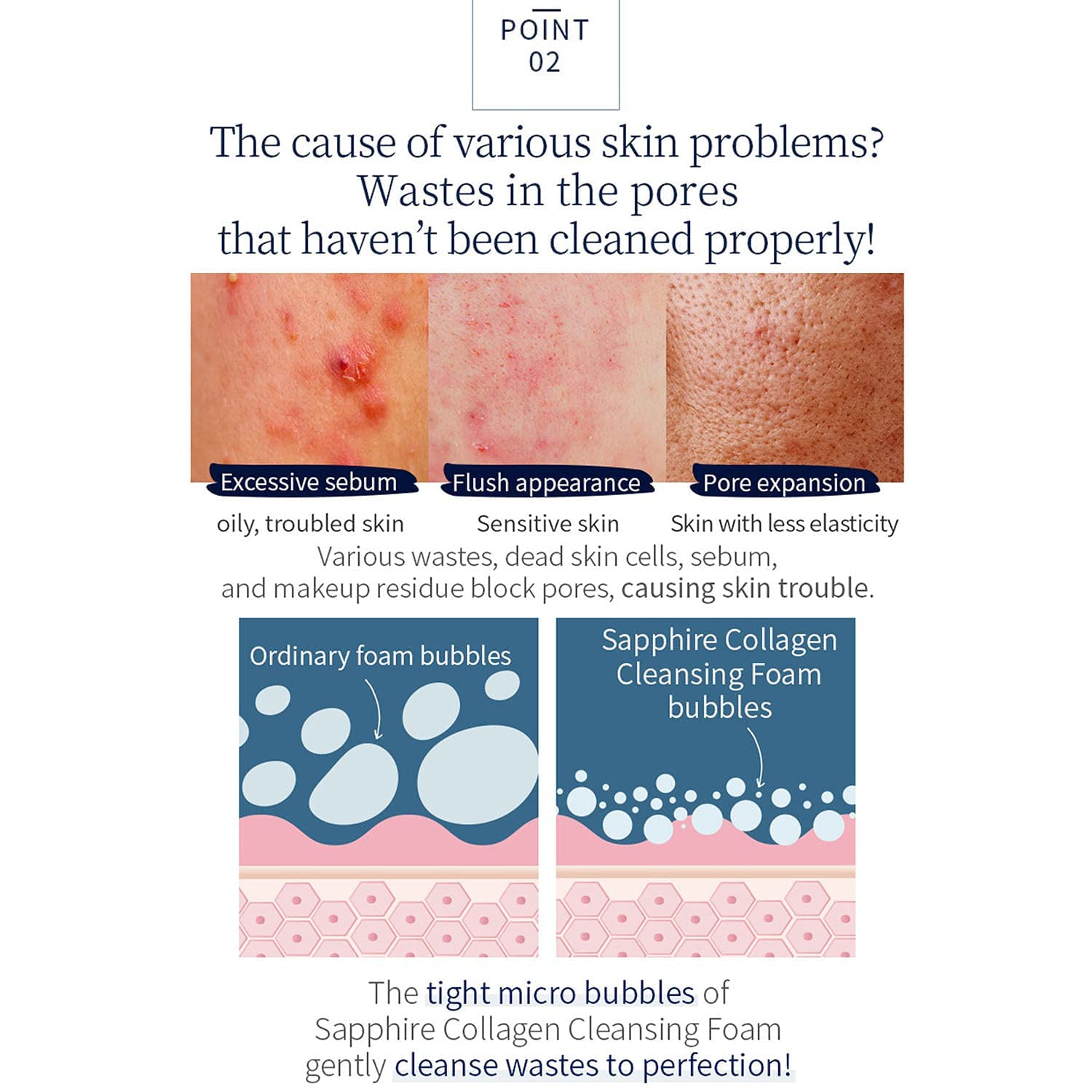 WELLDERMA Sapphire Collagen Cleansing Foam, 150mL – Gentle Facial Cleanser with Hydrolyzed Collagen & Glycerin, Moisturizing Creamy Lather