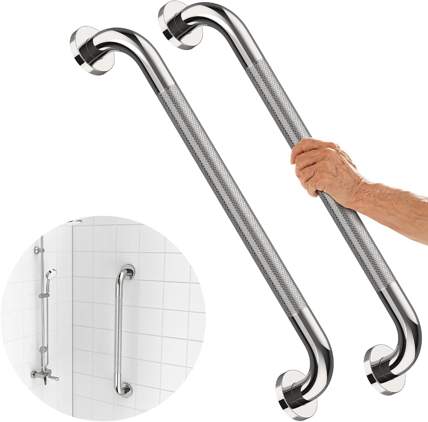 2 Pack 32 Inch Shower Grab Bar with Anti-Slip Grip, iMomwee Chrome Stainless Steel Bathroom Grab Bar Handle, Shower Balance Bar, Safety Hand Rail Support, Handicap Elderly Senior Assist Bath Handle