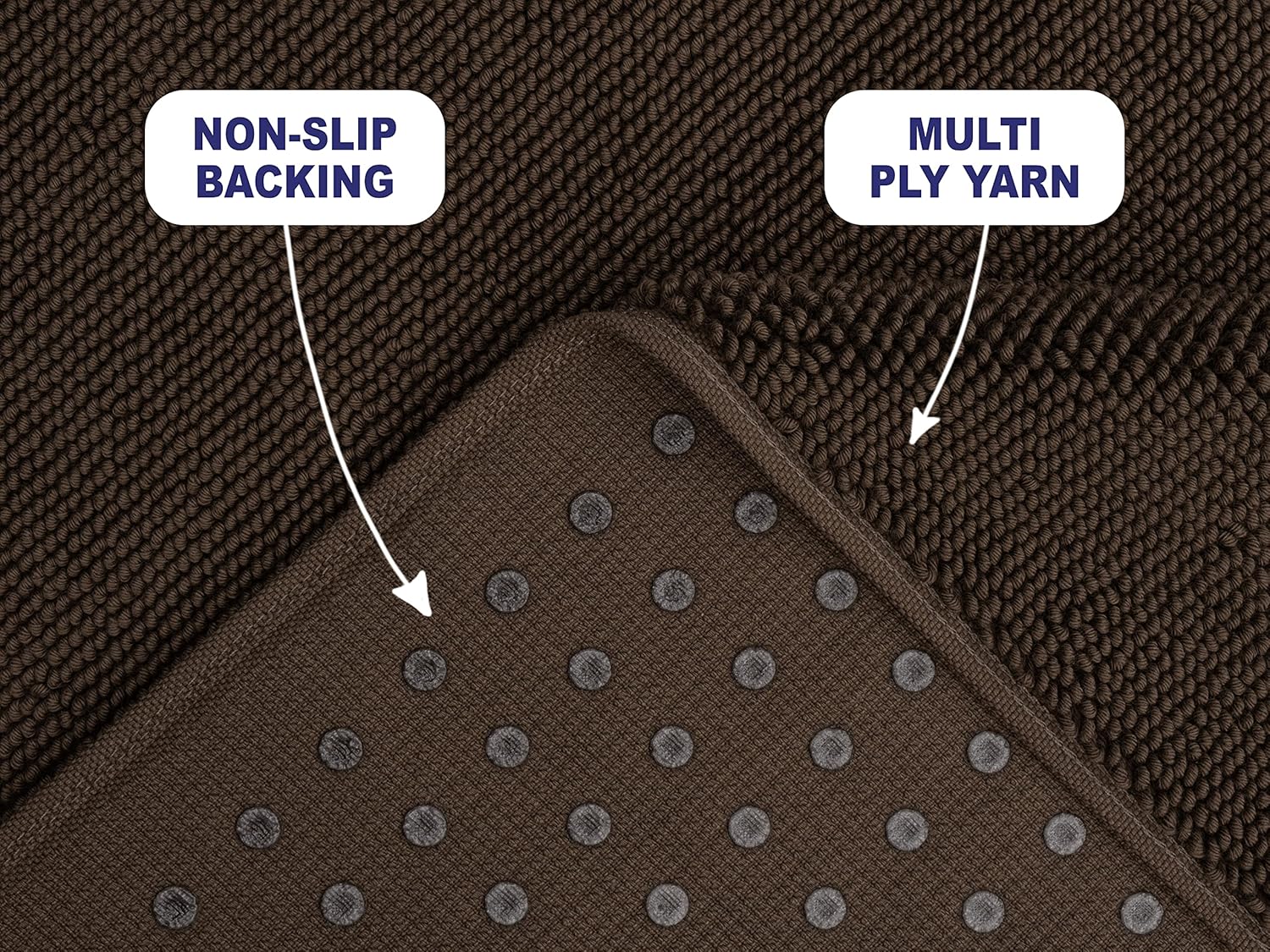American Soft Linen Bath Rug, 17 in 24 in 100% Cotton Bath Mats Rugs for Bathroom, Slip Reducer Washable Shaggy Form Area Rugs, Brown Bath Rug