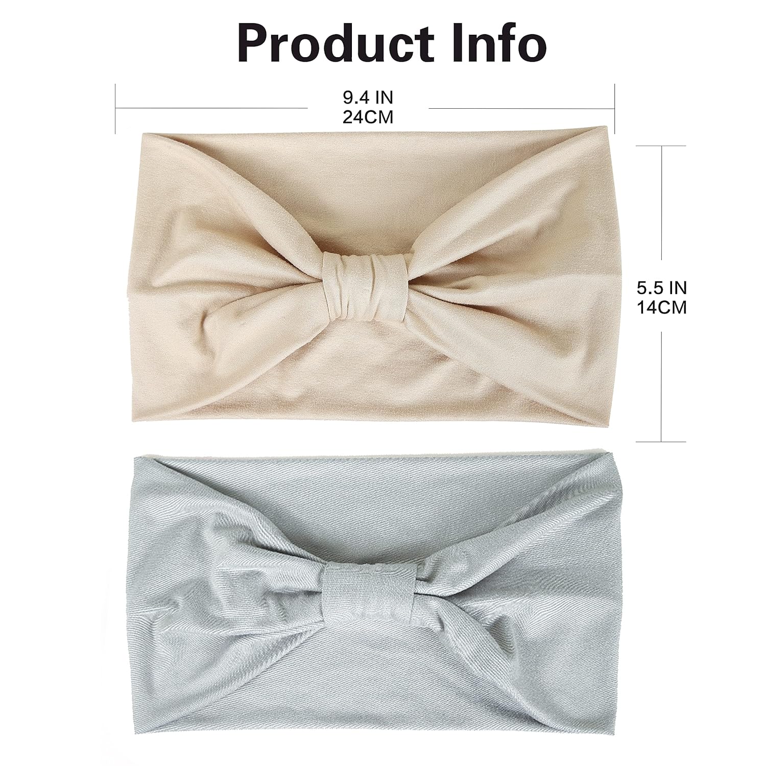 GiLi 2 Pack Wide Headbands for Women Boho African Knotted Non Slip Fashion Hair Bands Yoga Running Sports Workout Gym Head Wraps Elastic Soft Cotton Cloth Turbans Bandana for Girls(Light Grey, Skin)