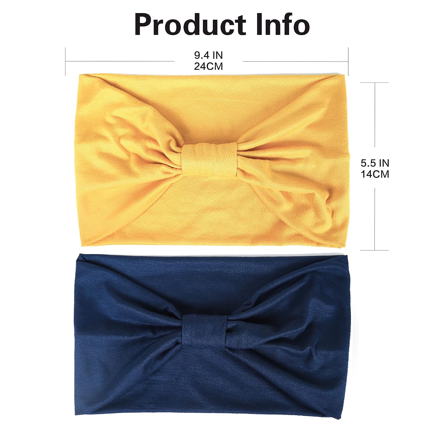 GiLi 2 Pack Wide Headbands for Women Boho African Knotted Non Slip Fashion Hair Bands Yoga Running Sports Workout Gym Head Wraps Elastic Soft Cotton Cloth Turbans Bandana for Girls(Yellow,Navy)