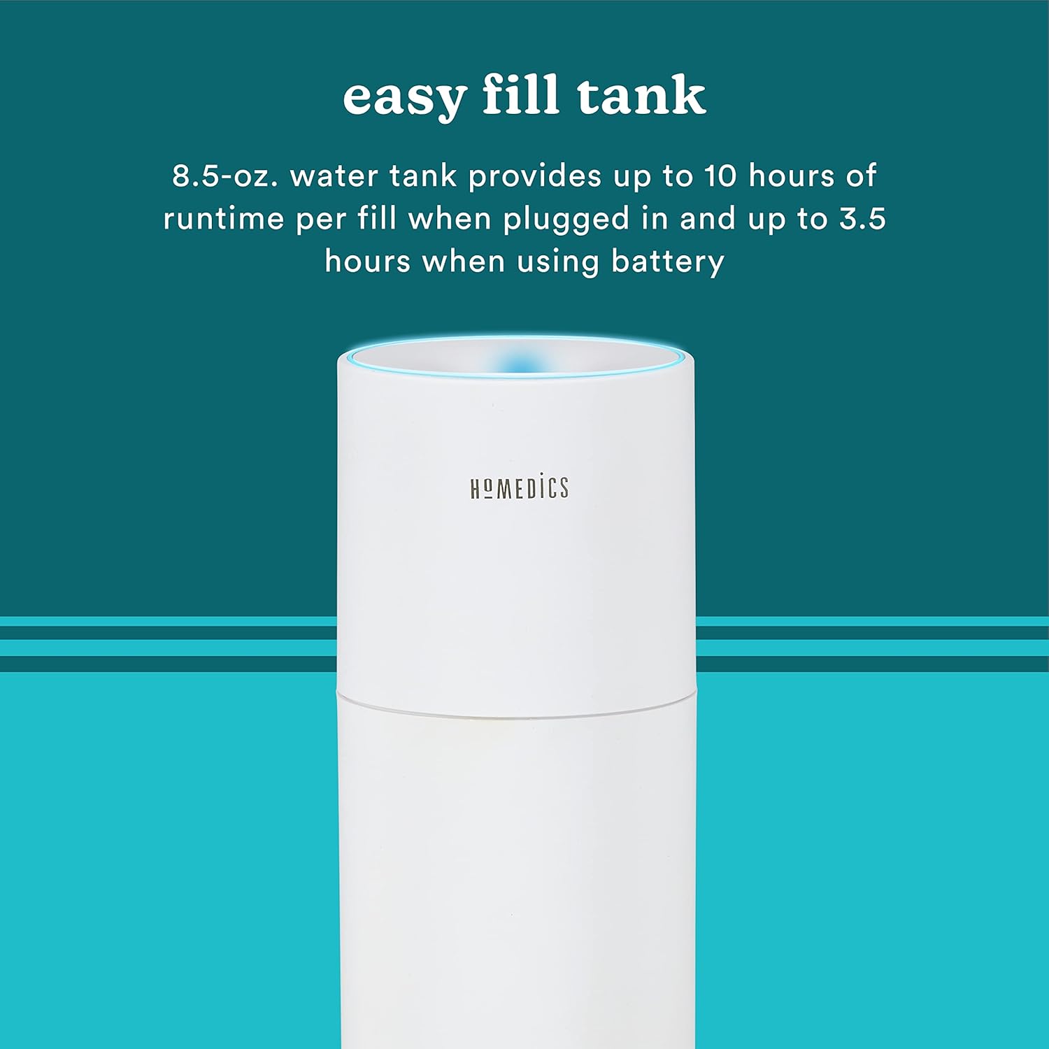 Homedics Portable Humidifier - Small Air Humidifiers for Bedroom, Plants, Office, Travel - Cool Mist Humidifiers, Color-Changing Accent Light, 2 Mist Settings, White