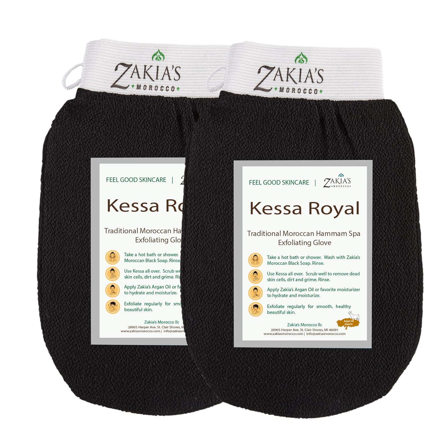 Moroccan Kessa Exfoliating Glove - Value Pack (2 piece) Black- Microdermabrasion exfoliating mitts, Removes unwanted dead skin, dirt and grime and Keratosis Pilaris. Great for spray tan removal.