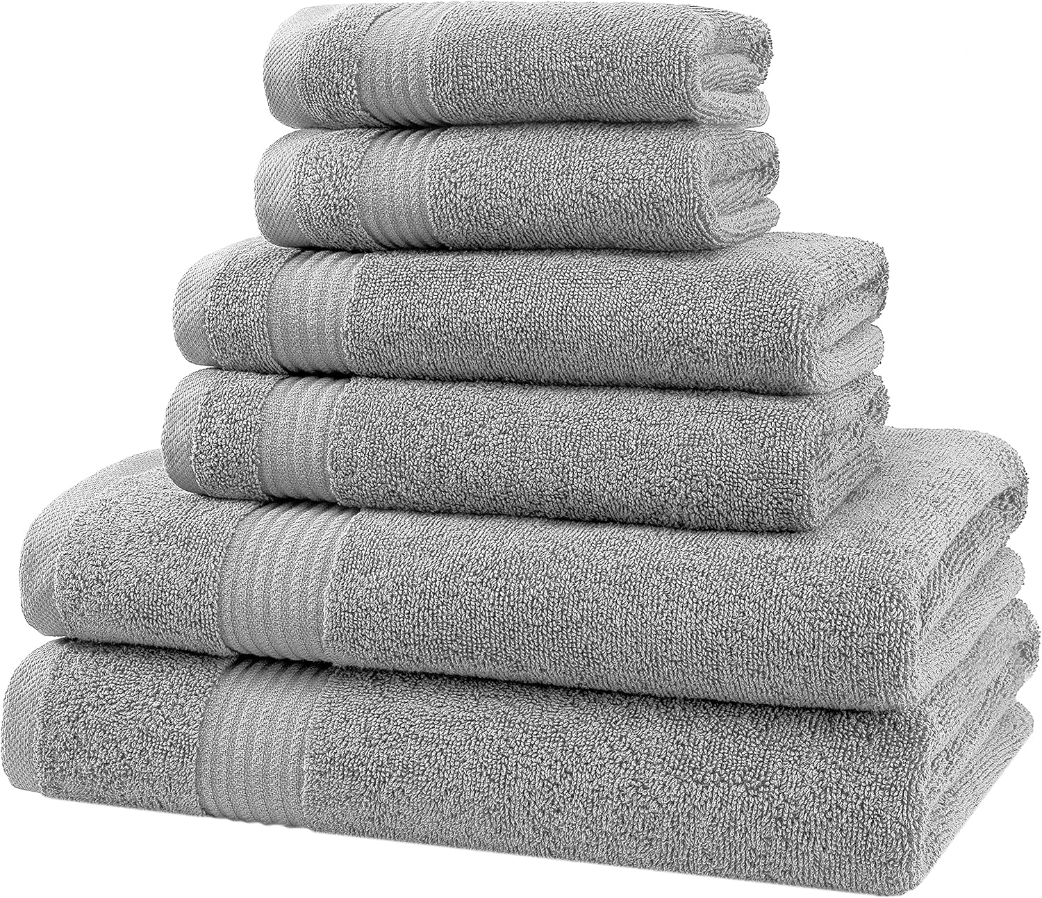 American Veteran Towel, 6 Piece Towel Set for Bathroom, 100% Cotton Turkish Bathroom Towels, 2 Bath Towels 2 Hand Towels 2 Washcloths, Cool Grey