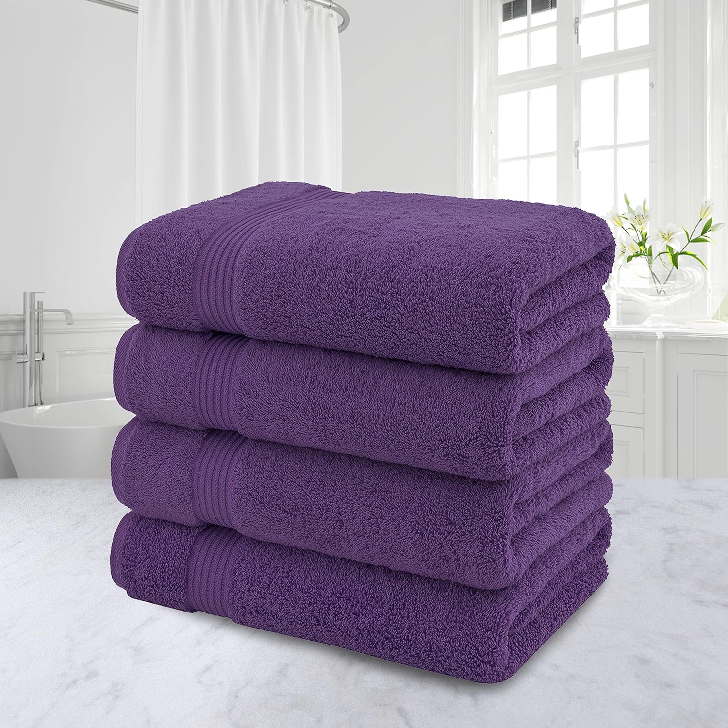 American Veteran Towel, 100% Cotton Turkish Bath Towels for Bathroom 4 Pack, 27x54 Extra Large Premium Soft Drying Bathroom Towels, Purple