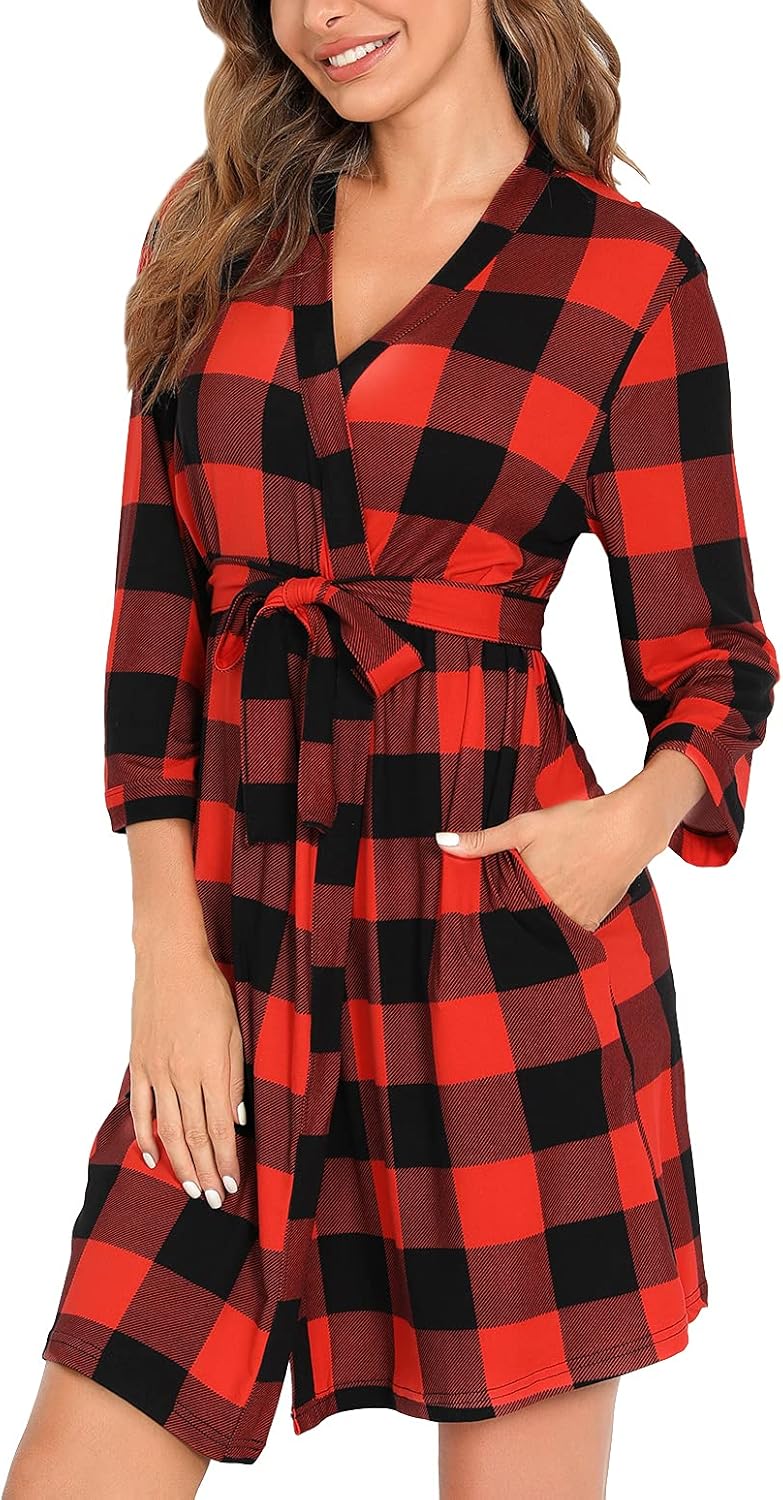 - Unique Design —— This comfortable and sexy bath robe features 3/4 sleeves wrap design robe, waist front tie, side pockets to keep your hands warm or to keep things close by your side while you are lounging or nursing your baby.