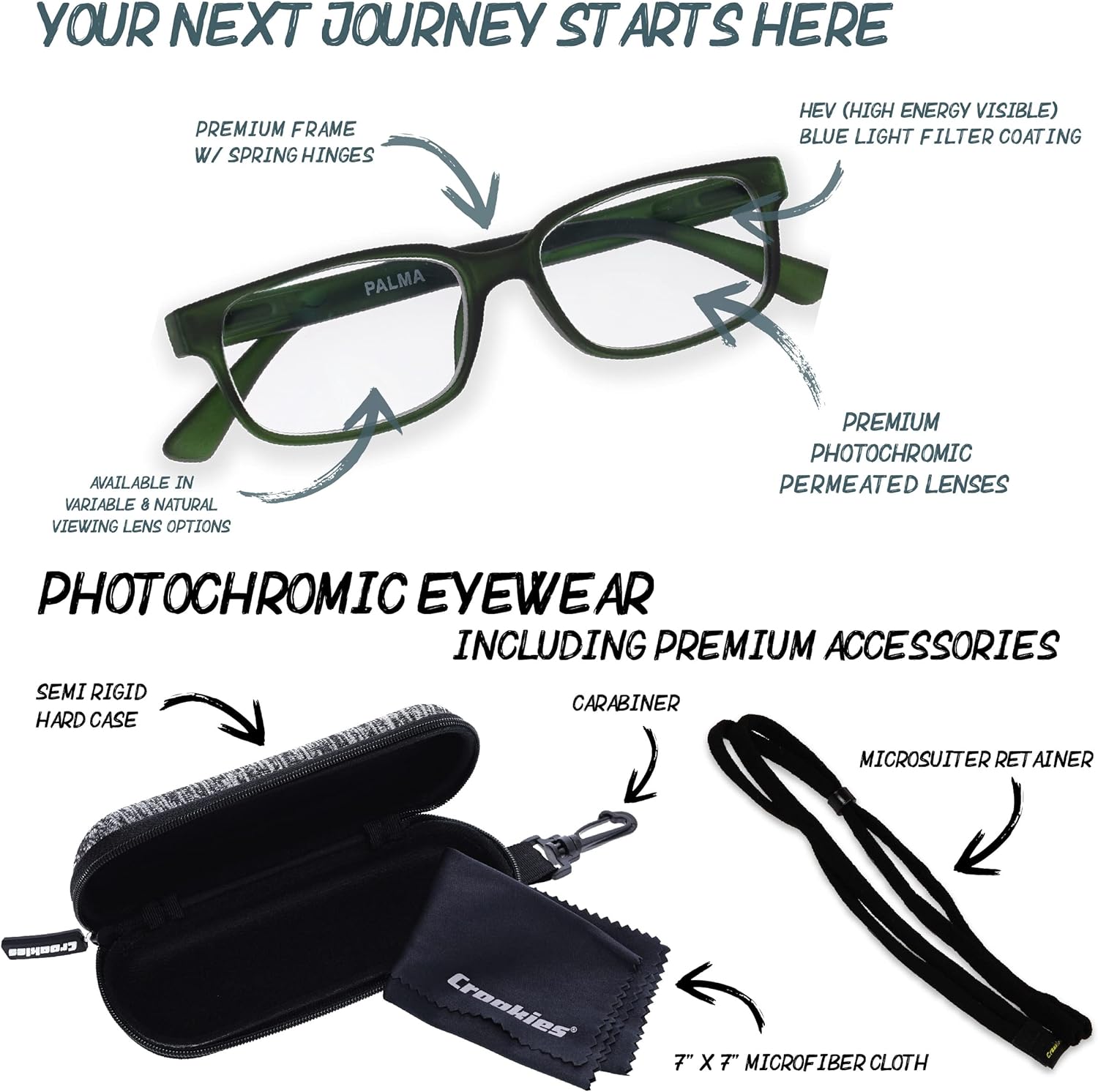 Croakies Palma Photochromic Eyewear | UV400 Sunglass and Bluelight Protective Eyeglass For Outdoor and HEV Devices | Bundle