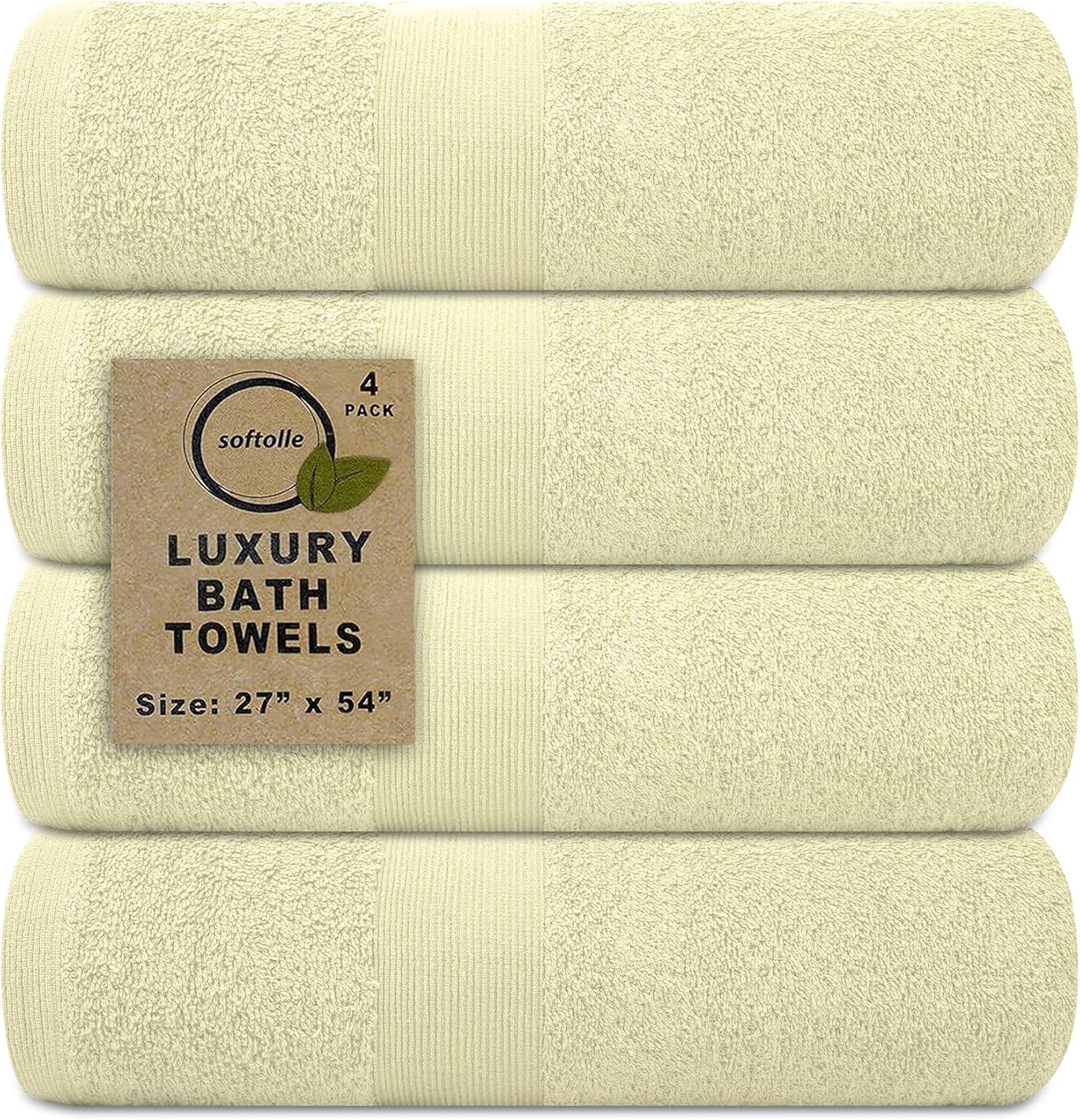 Softolle Luxury Bath Towels Set of 4 (27” x 54”) | Towels for Bathroom | Super Soft | Highly Absorbent Towels for Home, Spa, Gym (Cream)