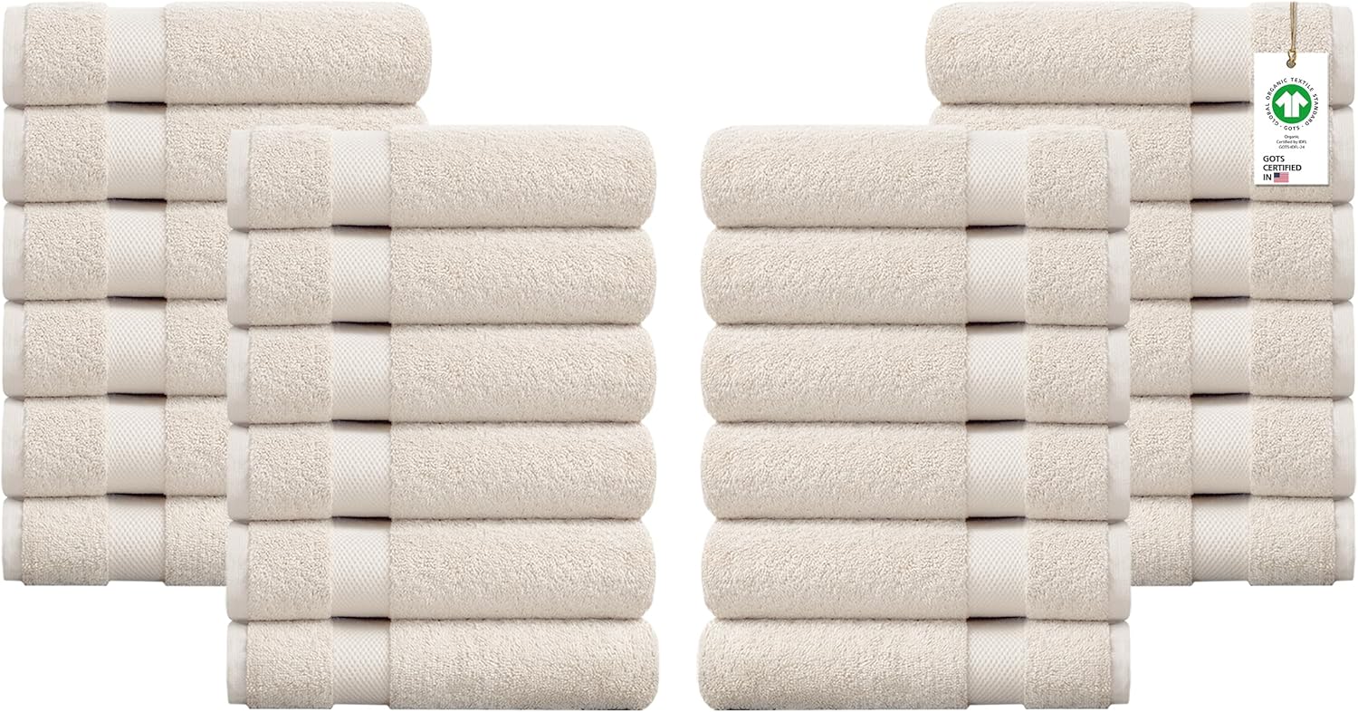 Delara 100% Organic Cotton Towels 650 GSM Plush Feather Touch Quick Dry Hand Towel, Pack of 24 GOTS Certified, Oeko-Tex Green Certified, Organic Cotton Hand Towel, 20"X30"