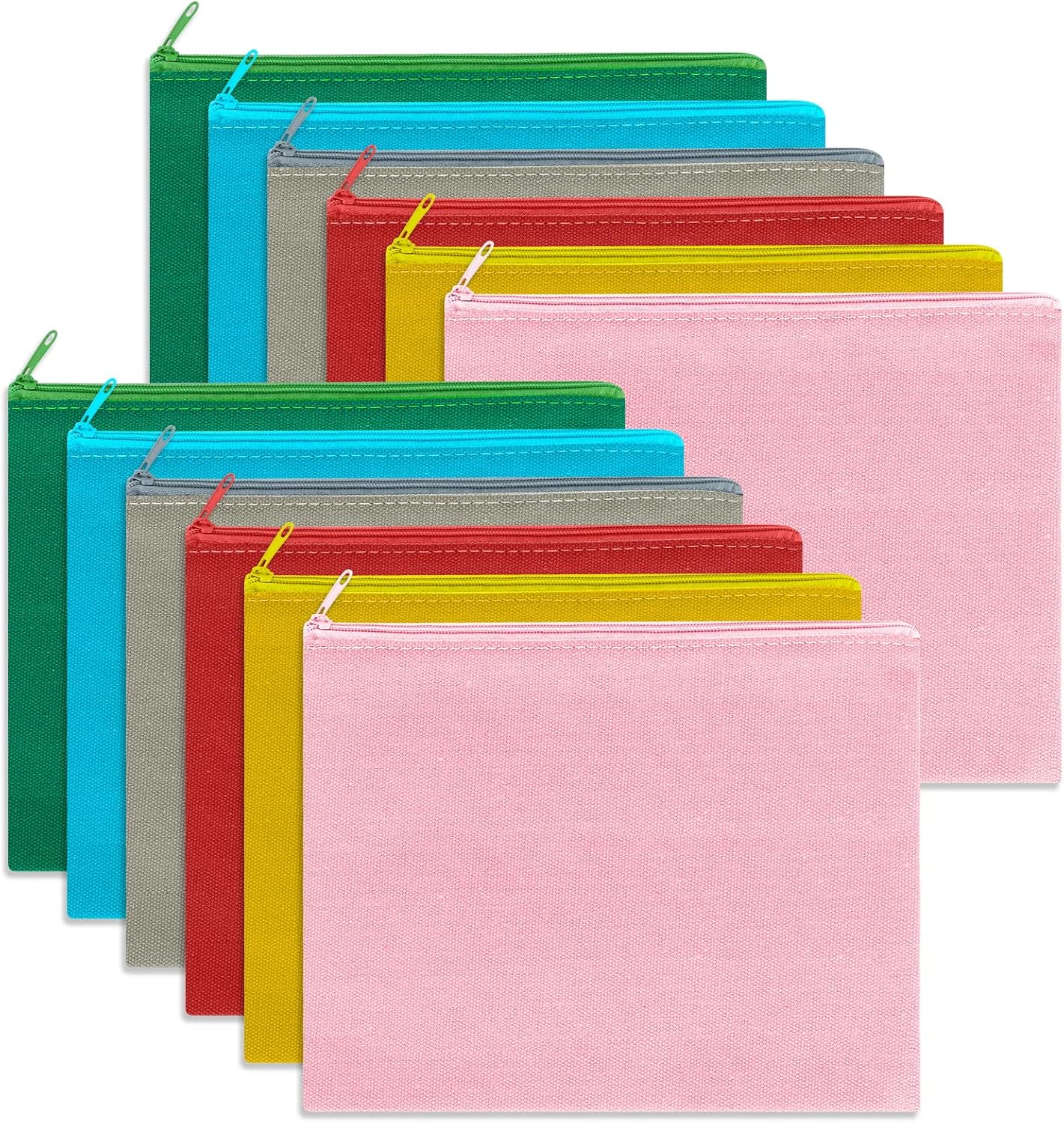 12 Pieces Cotton Canvas Makeup Bag, Multipurpose Cosmetic Bag with Zipper Travel Toiletry Pouch, Blank DIY Craft Bag (Multicolored A, L)
