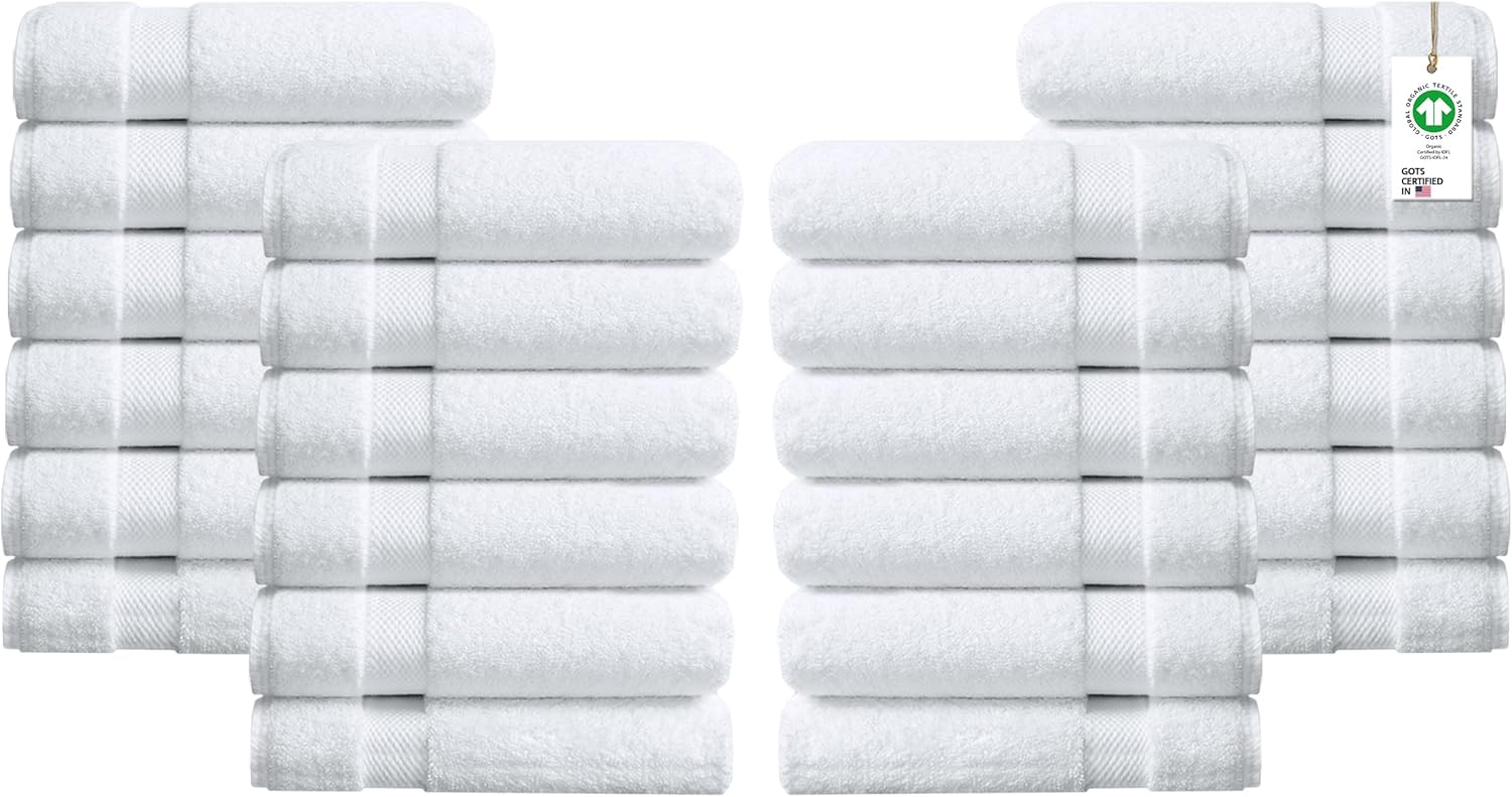 Delara 100% Organic Cotton Towels 650 GSM Plush Feather Touch Quick Dry Wash Cloth, Pack of 24 GOTS Certified, Oeko-Tex Green Certified, Organic Cotton Wash Cloth, 13"X13"