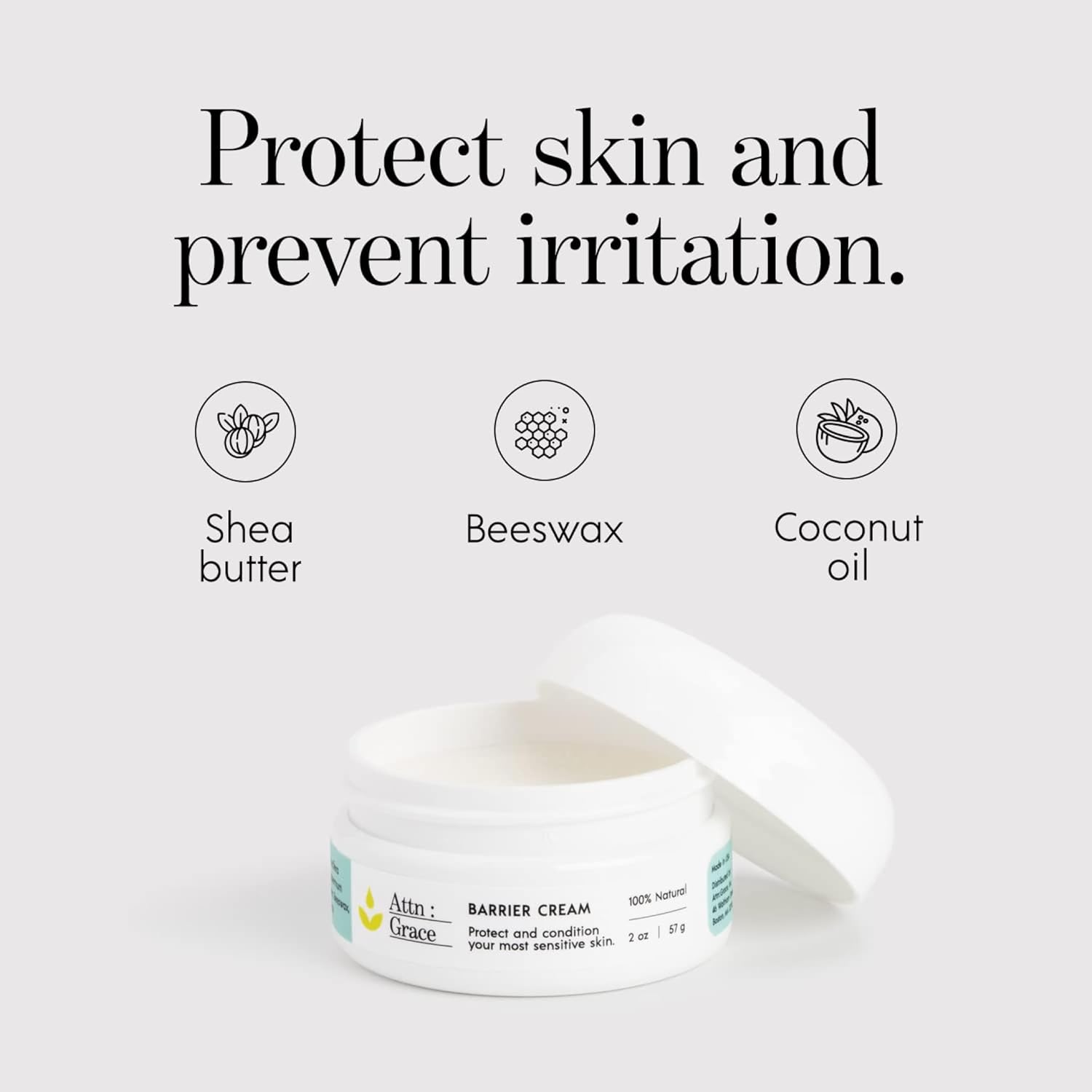 ATTN : GRACE Barrier Cream - Coconut Oil, Shea Butter, and Beeswax Protects Skin and Prevents Irritation - Promotes Rapid Healing for Damaged Skin - Dermatologist Tested, Talc Free, No Parabens