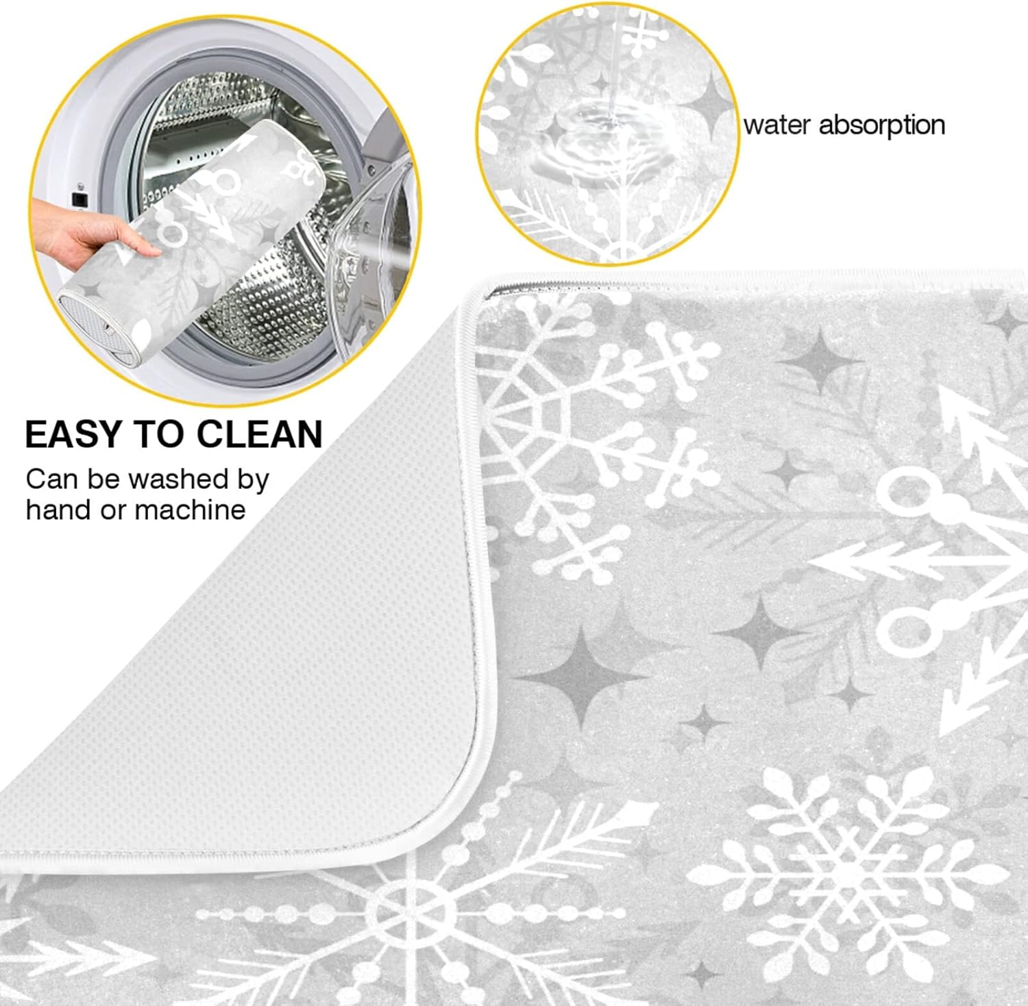 Dish Drying Mat for Kitchen Counter 18 x 16 Inch Christmas Silver Snowflake Microfiber Dish Mat Drying Pad Absorbent Dishes Pad Dish Drainer Rack Mats
