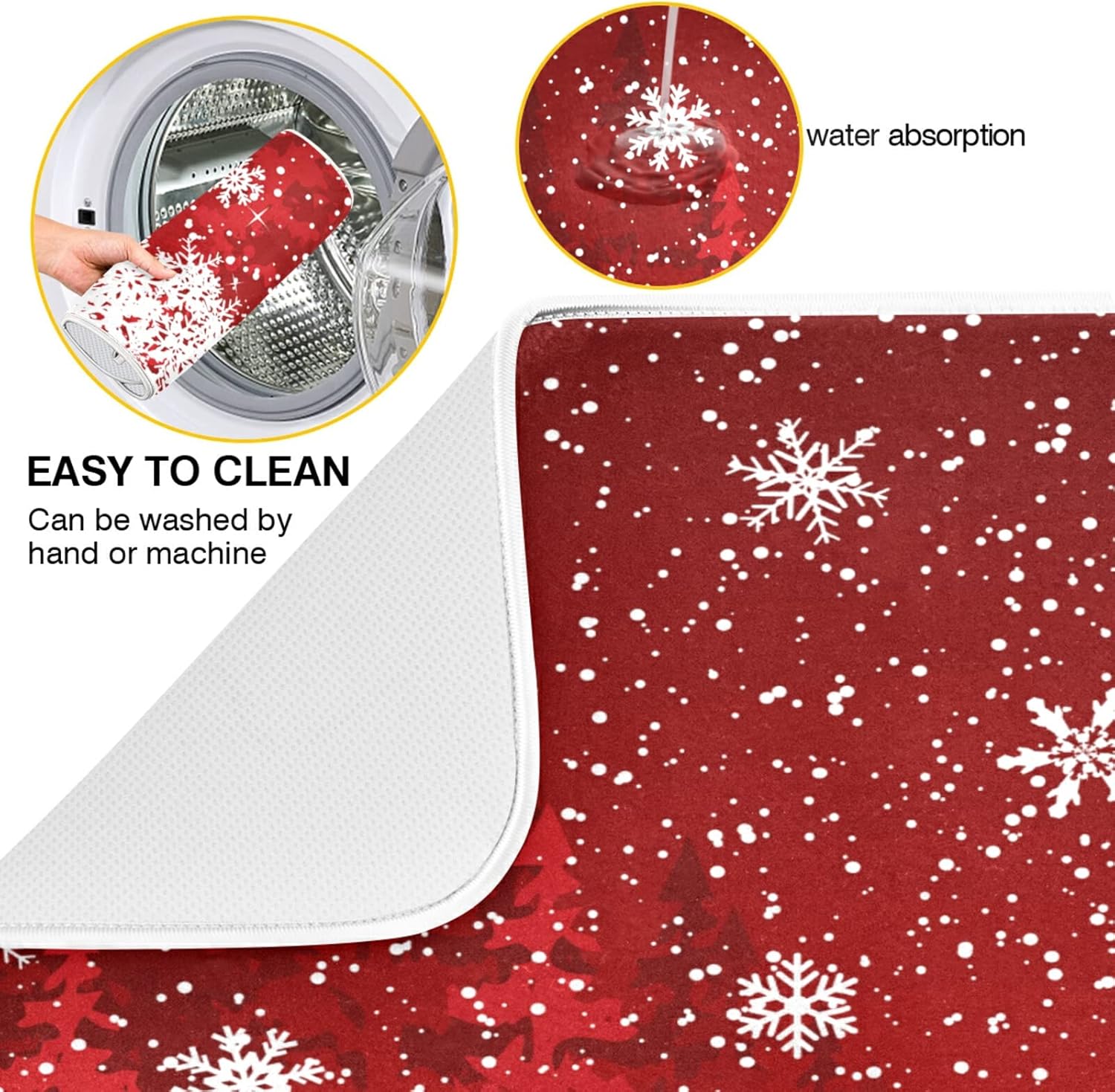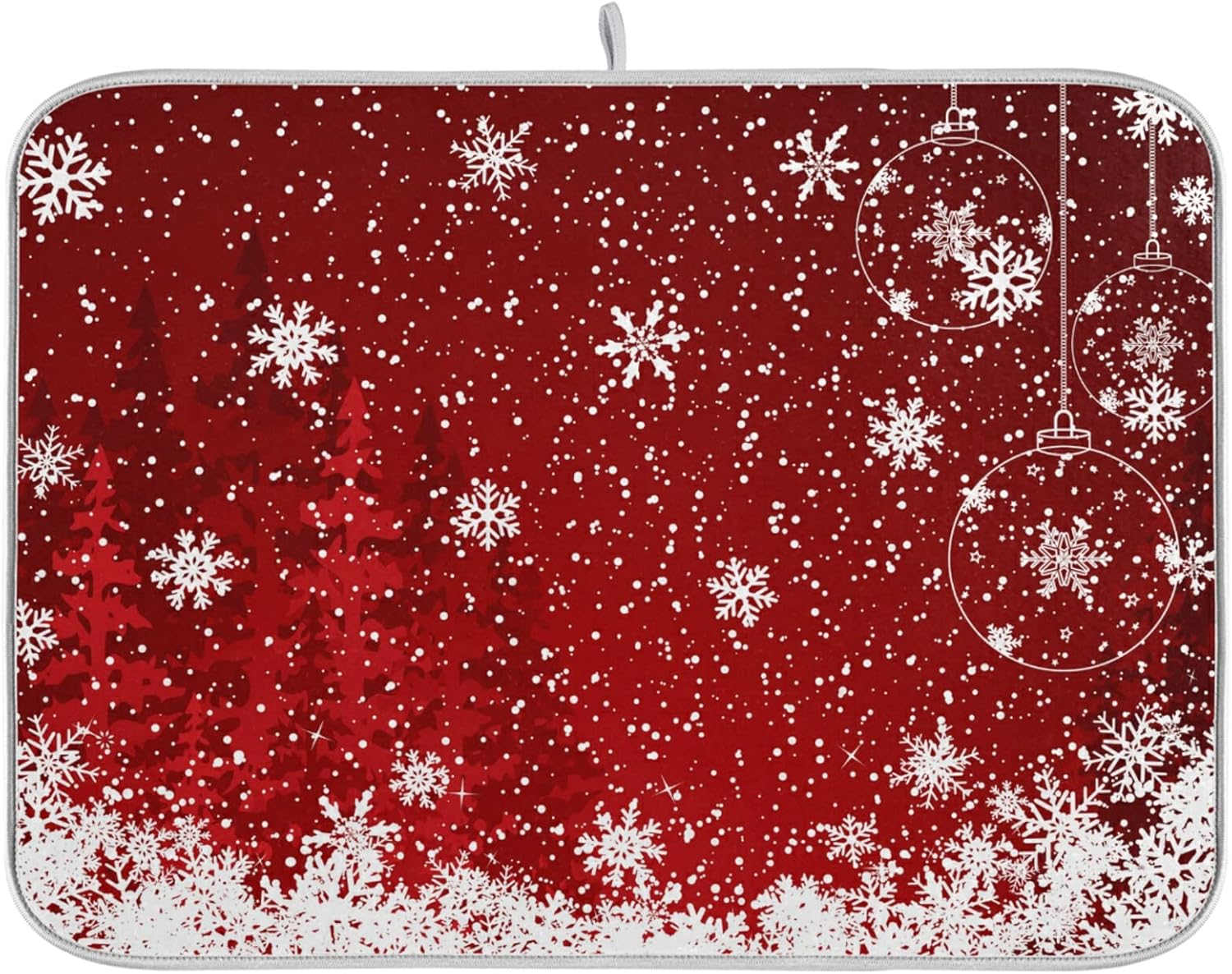 Dish Drying Mat for Kitchen Counter 18 x 16 Inch Romantic Christmas Snowflake on Red Microfiber Dish Mat Drying Pad Absorbent Dishes Pad Dish Drainer Rack Mats