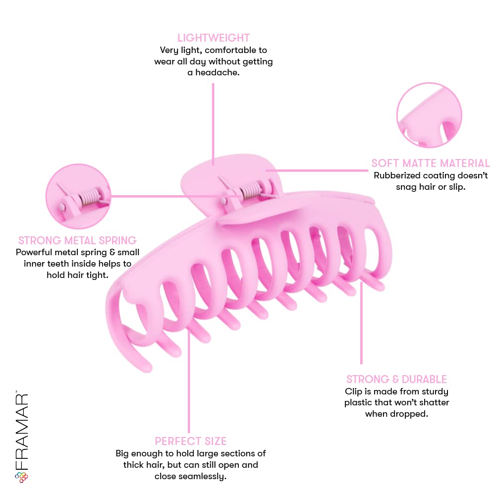 - Matte Finish - These large claw clips offer a soft matte material with a rubberizing coating that doesn’t snag or slip out of your hair. The perfect addition to your hair styling accessories.