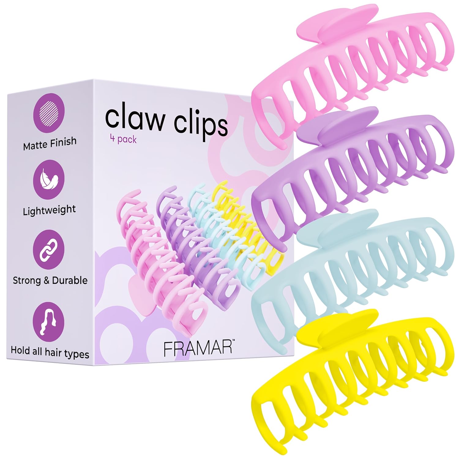 FRAMAR Large Claw Clips For Thick Hair – Large Hair Clip For Thick Hair, Big Hair Clips For Women, Hair Claws Clips For Women, Pastel Hair Clips, Pastel Claw Clip - 4 Pack Non Slip Matte Finish