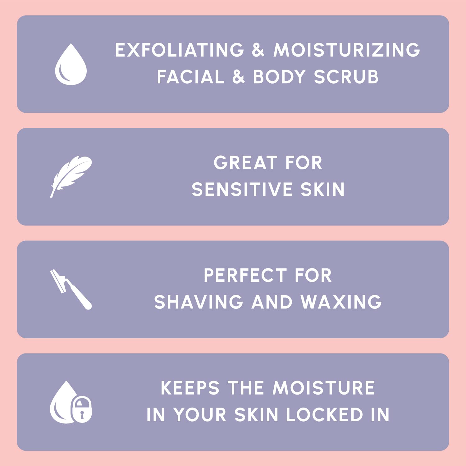 - MOISTURIZING FULL BODY SCRUB – The rich and precious oils contained in this hand, foot and hand scrub scrub are invigorating and nourishing. It is a great moisturizer for skin and can act as a cleanser for oily and acne prone skin. Gently buff away dead, dry skin, and reveal newer-looking skin underneath with this facial scrub and skin scrub.