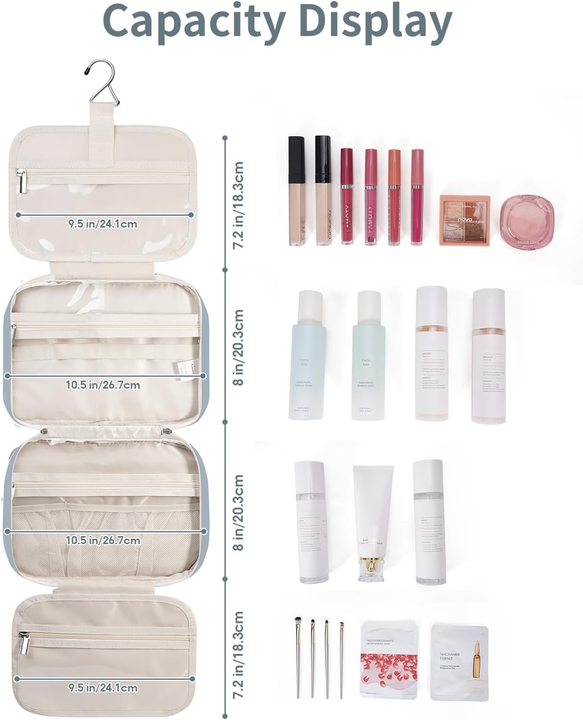 Narwey Hanging Toiletry Bag for Women Travel Makeup Bag Organizer Toiletries Bag for Travel Size Essentials Accessories Cosmetics (Greyish Blue (Medium))